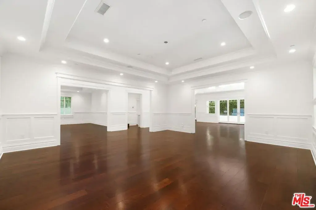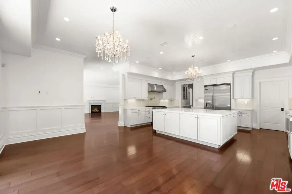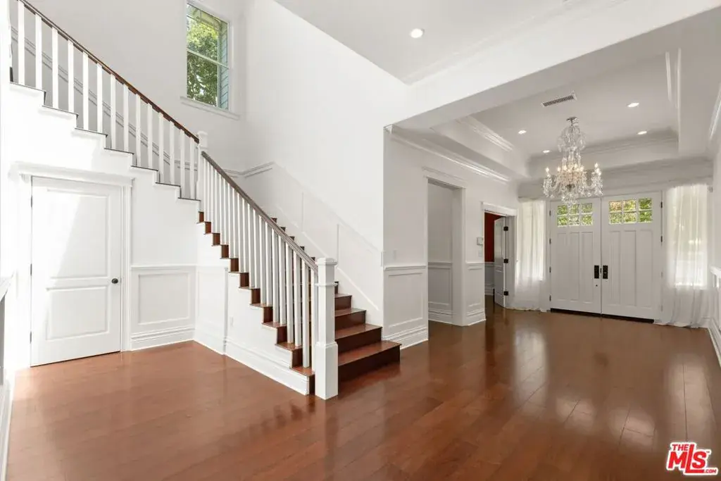 This transitional masterpiece offers approximately 6,654 square feet of refined living space nestled upon a sprawling, verdant lot, offering enchanting outdoor vistas and a sprawling backyard retreat. Enter through a grand vestibule into the luminous living room and captivating fireplace. The spacious family room with beautiful wood floors plays host to a second fireplace. On the lower level, discover two lavishly appointed powder rooms, an elegant formal dining enclave, and an open-concept kitchen adorned with top-of-the-line Viking appliances. Ascend to find five sumptuously appointed bedrooms, each boasting its own private ensuite, while the opulent master suite features the home’s third fireplace, promising unparalleled serenity. Additional luxuries include a stately home office and a crystalline pool, beckoning moments of leisure and reprieve. Ideally situated, this resplendent residence offers seamless access to freeways, the airport, Beverly Hills, nearby beaches, all within the esteemed Warner School District. For more information contact listing agent.