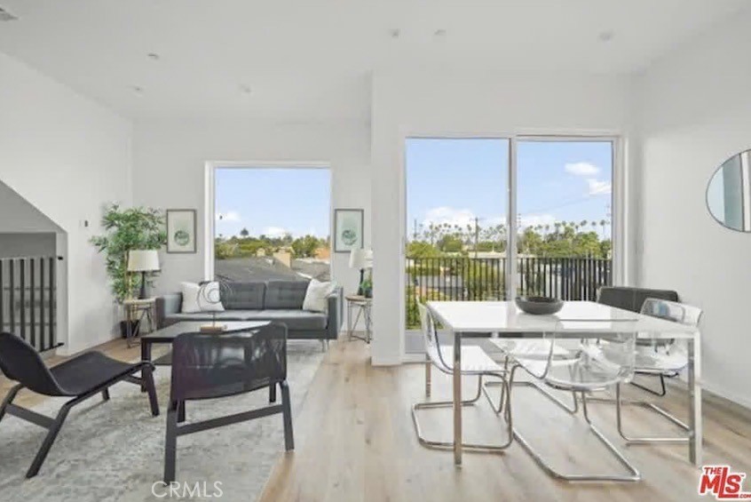This newly constructed dream home is one of four brand new townhomes in one of LA’s centrally located neighborhoods in Mid-City. A wealth of cultural venues, business opportunities, first-rate restaurants, and exclusive boutiques are within easy reach. The property exceeds all the demands of contemporary living, boasting a bright and airy 1,387 sq ft floor plan, secure two car garage and spacious rooftop deck with glittering metropolitan views. Ingeniously designed using the finest materials, this three-story is a modern masterpiece. An abundance of natural light floods the interior, elegantly showcasing lofty ceilings, gorgeous wide planked floors and a muted color palette. A refined double-aspect living and dining room with an adjoining balcony creates a comfortable atmosphere. This sun-splashed area, outstanding for entertaining, flows into the superb kitchen with a quartz waterfall island as its centerpiece. The black and white themed meal prep workspace offers custom cabinetry and an integrated laundry. The stylish aesthetic continues in the main level flex room – ideal as a home office or third bedroom. A guest room with adjacent bath is matched in comfort by the primary suite with luxe bath and private balcony. Alongside the covetable living space, the crowning glory of this unique residence are the glorious panoramas offered by the immense roof terrace. This peaceful cul-de-sac is proximate to Beverly Hills and Hollywood with effortless access to the 10 and 110 freeways.