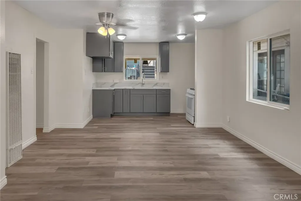 Courtesy of Wedgewood Homes Realty. Disclaimer: All data relating to real estate for sale on this page comes from the Broker Reciprocity (BR) of the California Regional Multiple Listing Service. Detailed information about real estate listings held by brokerage firms other than James Outland include the name of the listing broker. Neither the listing company nor James Outland shall be responsible for any typographical errors, misinformation, misprints and shall be held totally harmless. The Broker providing this data believes it to be correct, but advises interested parties to confirm any item before relying on it in a purchase decision. Copyright 2026. California Regional Multiple Listing Service. All rights reserved. The front portion of the property features a combination of grass lawn and a paved area that can be used for parking. A raised porch leads into the main home, where a clean, modern interior opens to a connected living, dining, and kitchen area. The kitchen has been updated and includes in-unit laundry along with direct access to the exterior. Two bedrooms and a fully updated bathroom complete the interior.