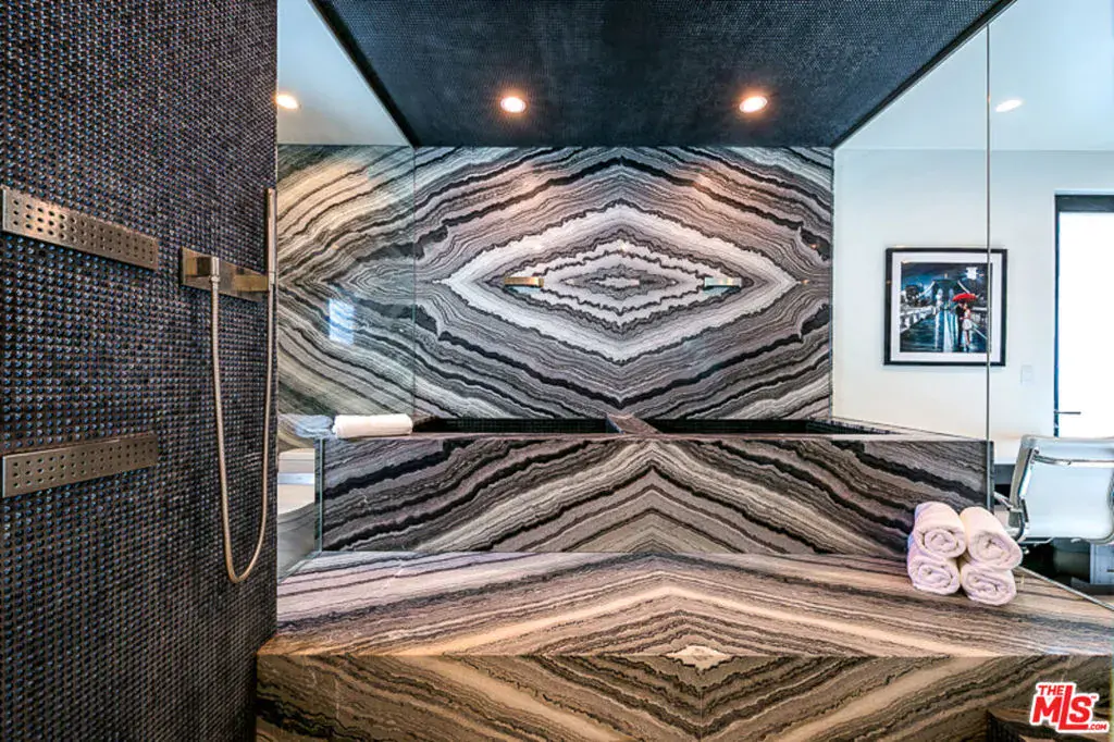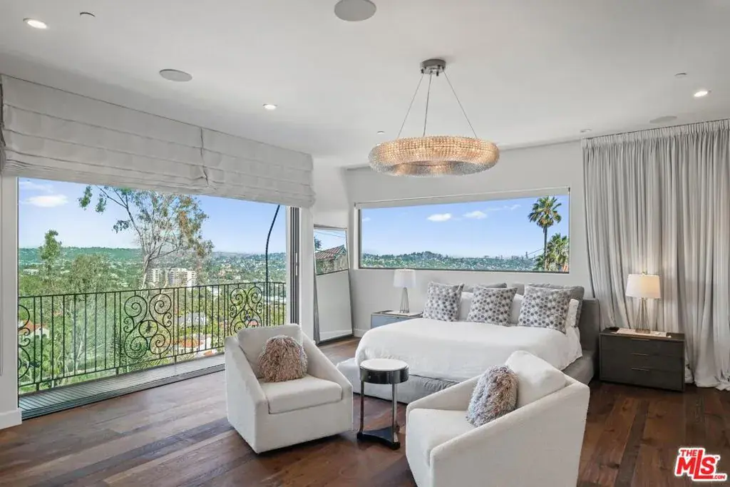 Welcome to “Villa De Bonvue”, a masterfully renovated Mediterranean estate perched on a promontory in the prestigious Los Feliz Hills offering jaw-dropping panoramic views from the lush canyons to the glittering skyline of DTLA. Set on a rare street-to-street lot with seven car garage and gated motor court, this architectural gem captures commanding vistas from nearly every room, enhanced by full-length balconies and a rooftop deck designed to frame the city’s most iconic landscapes. Every inch of this residence has been thoughtfully curated with luxury in mind featuring white honed travertine, European oak flooring, Italian-imported Bonotti marble, Calacatta Gold countertops, and custom oak and Zebrawood cabinetry. The primary suite is a showstopper with wraparound views, dual spa-inspired bathrooms, a soaking tub, steam and horizontal showers, and boutique-style closets. Unmatched amenities include a movie theater, bowling alley, game room, fitness center, wellness studio, salon, multiple kitchens including a chef’s kitchen, and a resort-style infinity pool and spa. A detached guest house adds versatility for hosting or multigenerational living. Within close proximity to Netflix HQ, Griffith Park, The Greek Theatre, and all the best dining, culture, and nightlife in Los Feliz and Hollywood. Exceptional short term rental track record, reach out for STR rental figures. At only $750 a foot, this exceptional compound is arguably the best value in all of the Los Feliz Hills for a home of this caliber. Truly a unbeatable opportunity for the most discerning of buyers.