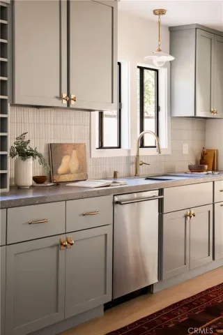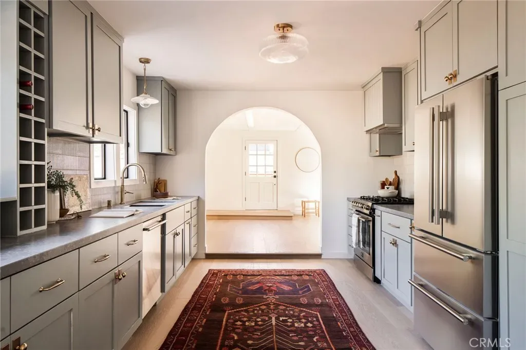 Nestled in prime Eagle Rock just below the trendy shops and eateries on nearby Colorado Blvd and a stone’s throw to sought after schools awaits 4843 Genevieve Ave, a light and bright sanctuary space brought to you by K + S Collective! Upon entering the pathway through the lush fenced in front yard and into the main living space you’ll find that absolutely everything has been lovingly custom designed from head to toe with thoughtful details and updated with meticulous craftsmanship. This exquisite home features three bedrooms, two baths PLUS a detached studio with its own half bath, perfect for guests, work, or creative pursuits. With warm wood flooring, updated systems, designer selected finishes, wood accents, custom wallpaper, skylights and detail work, you’ll find that every space in this home has been carefully curated to create beauty, comfort and joy. The bright floor plan of the home flows with ease and the expansive living room effortlessly opens to a gorgeous chef’s kitchen that features custom built cabinetry, beverage storage, top-of-the-line appliances and an abundance of storage. Just beyond the kitchen a charming built-in banquet area serves as a picture perfect family gathering and dining space. The ultra private and dreamy primary retreat is tucked away in the back of the home and features a massive walk-in closet that could double as a creative space or nursery and a luxurious ensuite bath complete with a chic soaking tub and spa-like glass walk-in shower. There is also a huge laundry / craft room with lovely custom shelving and finish work that doubles as a sweet homework station, home office or zoom meeting headquarters! Outside, you’ll find a beautiful large grassy yard perfect for lounging, play, or epic family gatherings. A long gated driveway leads to a garage that adds convenience and functionality. The adorable detached studio / guest space is located just behind the spacious garage and offers versatility galore. This sweet gem is a classic Eagle Rock dream home!