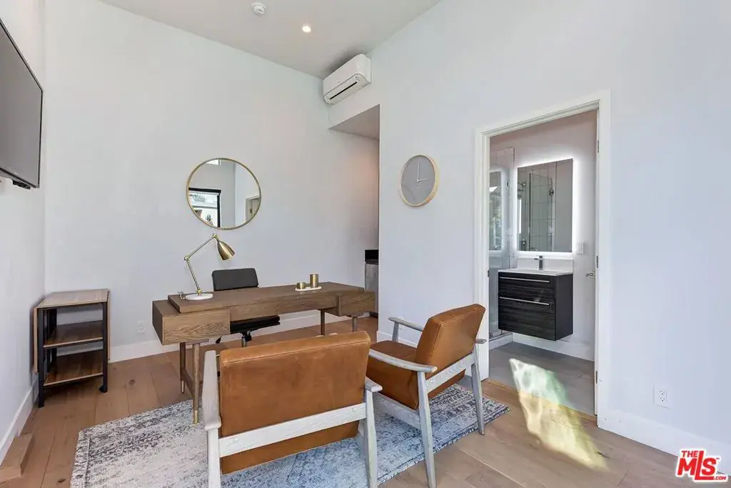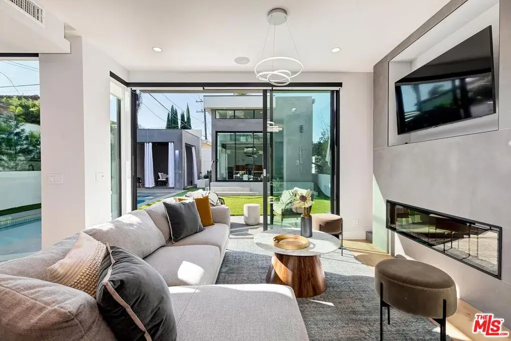 Exquisite brand new built 2022 modern villa with 3-levels of extraordinary living & entertaining areas in desirable Beverly Hills adjacent(1st home from Beverly Hills). A fully equipped home with 3 levels of living areas, separate guest house, cabana, fire pit, pool & spa tub, 2 car garage, elevator… Formal entry way to all entertaining areas with family room w/ fireplace, dining area, wine cellar and gourmet kitchen with an oversized center island all with direct access to the entertainers’ backyard. The first floor also features a two car garage and guest’s powder room. Sliding doors takes you to the private entertainers’ backyard w/sparkling pool & spa, cabana, massive fire pit and lounging areas with shower. Outdoor area also features contemporary guest house with high ceilings, central air, little kitchenette and bathroom. Luxury living continues upstairs with an additional family room, 3 bedroom suites including a pristine master suite with fireplace, sliding glass doors- leading out to a private balcony overlooking the backyard, walk-in closet, and a spa-like bath with large steam shower, soaking tub, dual sinks and vanity area. Underground level offers big ballroom, wet bar, temperature-controlled wine cellar, patio and incredible large underwater window view of the pool. In addition, this level has a bedroom suite with full bathroom, gym and a den/office/maid room with full bathroom. Top notch amenities include security cameras, smart home system, surround sound, elevator, pool, spa, guest house, laundry room, central vacuum, 2 car garage and more. Lower level (basement) 1443 sqft * First floor 1023 sqft * Second floor 1195 sqft * Recreation room (guest house) 200 sqft * Cabana 144 sqft * Garage 346 sqft.