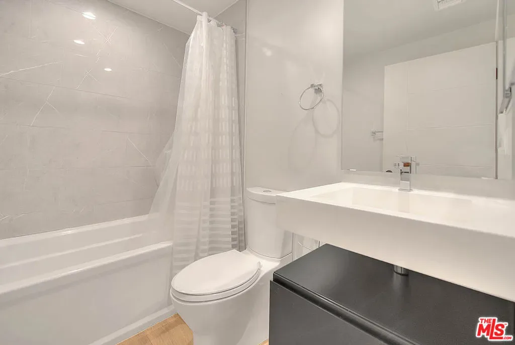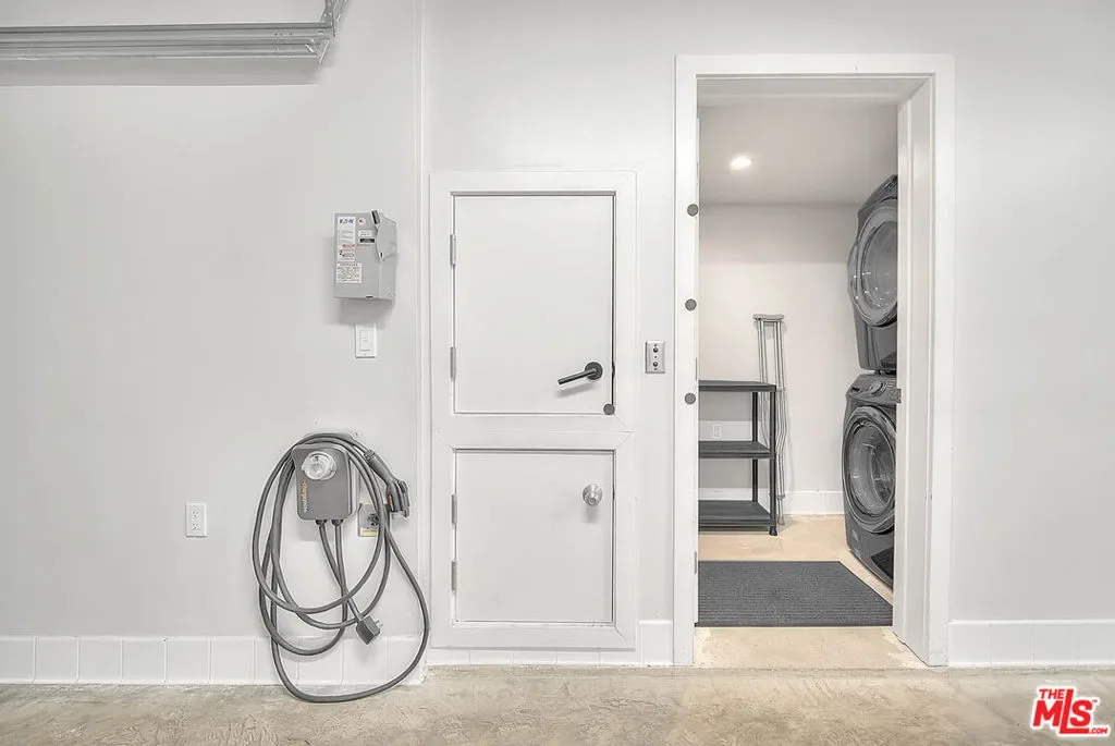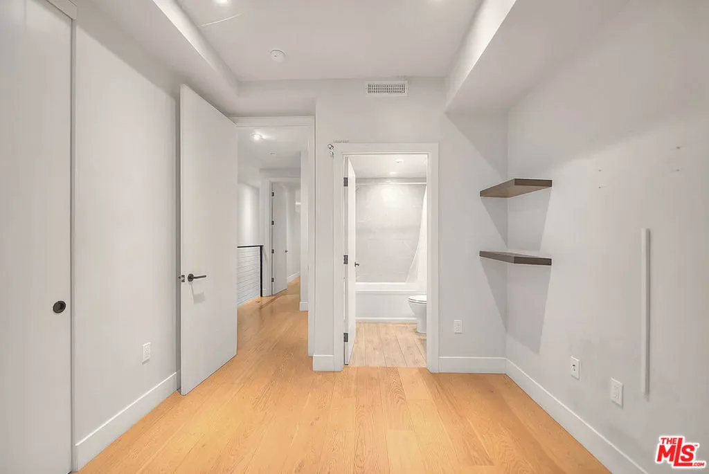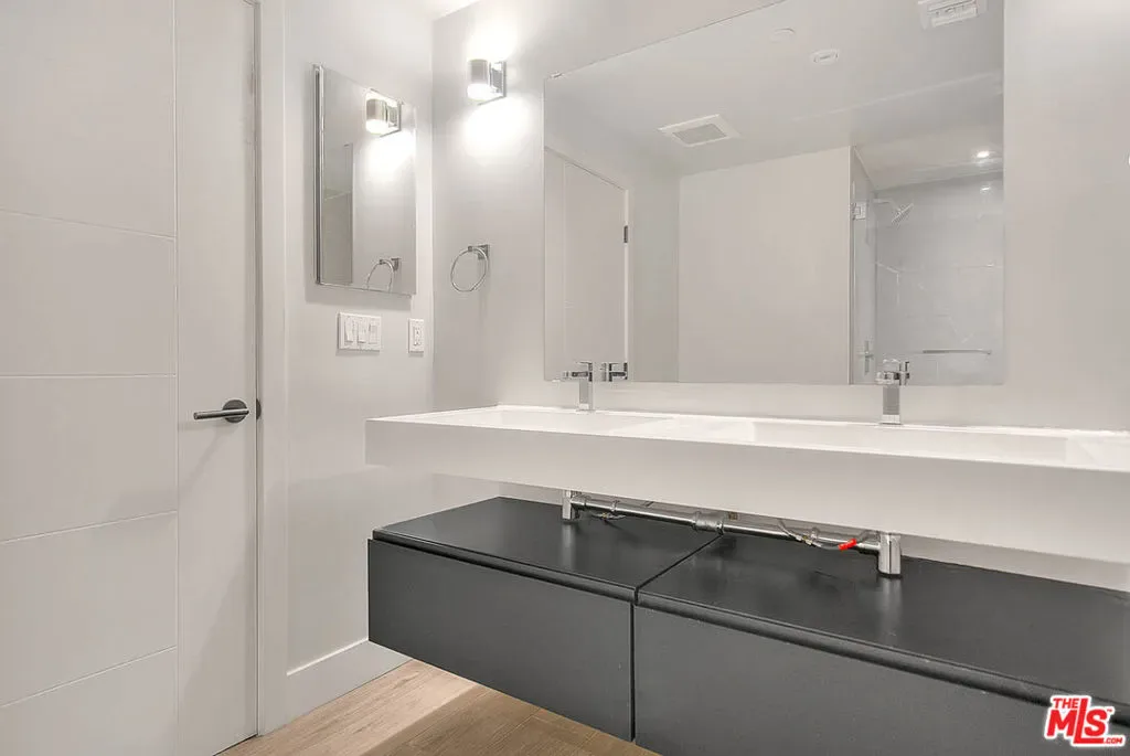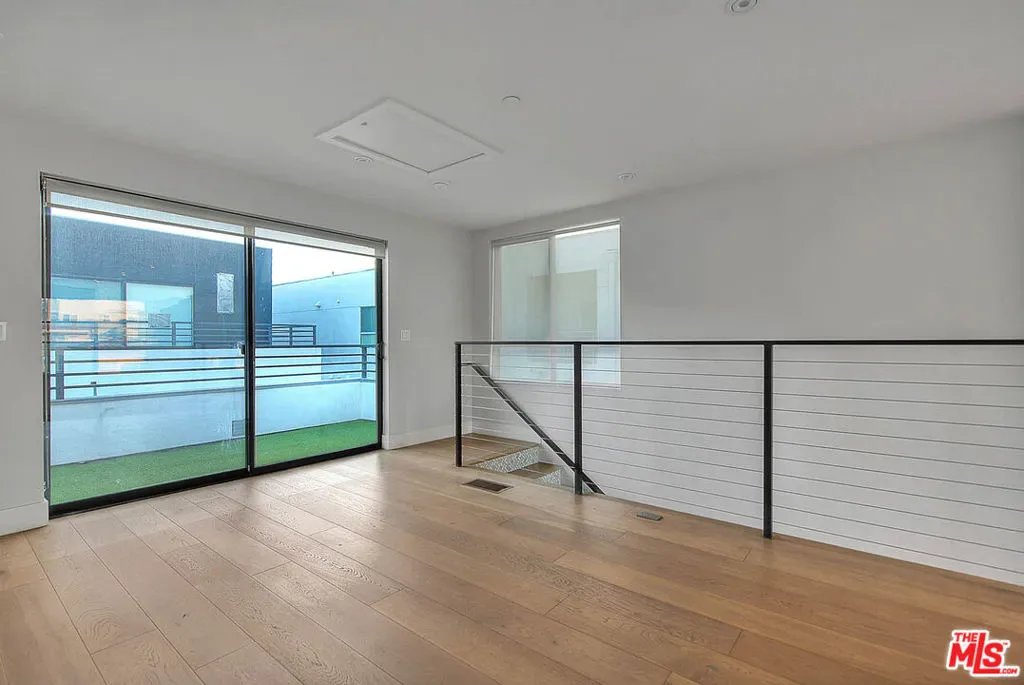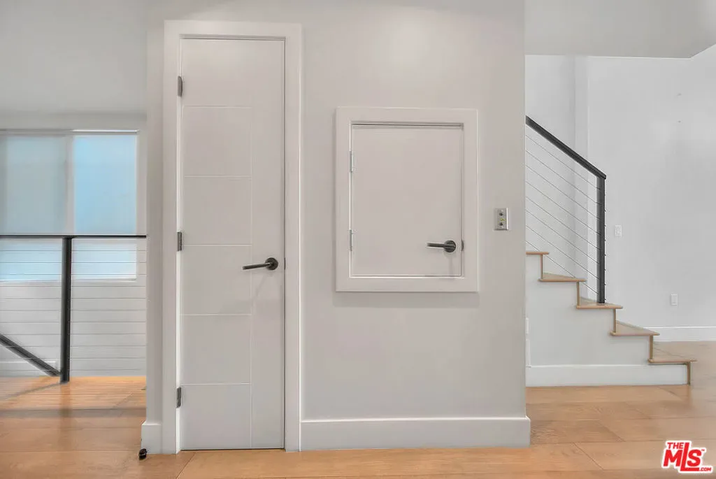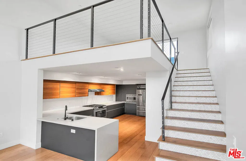 Tucked within an ultra-exclusive gated enclave of just four residences, this contemporary architectural home delivers dramatic scale, refined design, and effortless livability just moments from Hancock Park. Recently refreshed with new paint, the home presents as truly move-in ready, offering a rare combination of volume, light, and modern sophistication.Soaring 17-foot ceilings and walls of glass create a striking first impression, flooding the interiors with natural light and seamlessly connecting the living spaces to multiple private terraces. Enjoy morning coffee with soft eastern light and sunset entertaining with views stretching toward the downtown skyline and Hollywood Hills.The main level is anchored by a sleek imported Leicht kitchen, complete with an expansive bar ideal for hosting, while the open-concept layout flows effortlessly into a dramatic living room and versatile loft perfect as a home office, creative studio, or media space. The luxurious owner’s suite offers a true retreat, featuring a generous walk-in closet and a spa-inspired bath with an oversized walk-in shower. Thoughtful conveniences including a private two-car garage with direct entry and a rarely found dumbwaiter for effortless grocery transport enhance everyday living.Ideally located near Larchmont Village and The Grove, this home offers easy access to some of the city’s best dining, shopping, and entertainment while maintaining a sense of privacy and retreat.With its boutique scale, architectural presence, and turnkey condition, this is a rare opportunity for buyers seeking design, convenience, and exclusivity in one of Los Angeles’ most central locations.