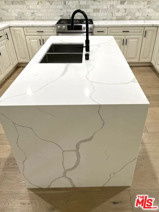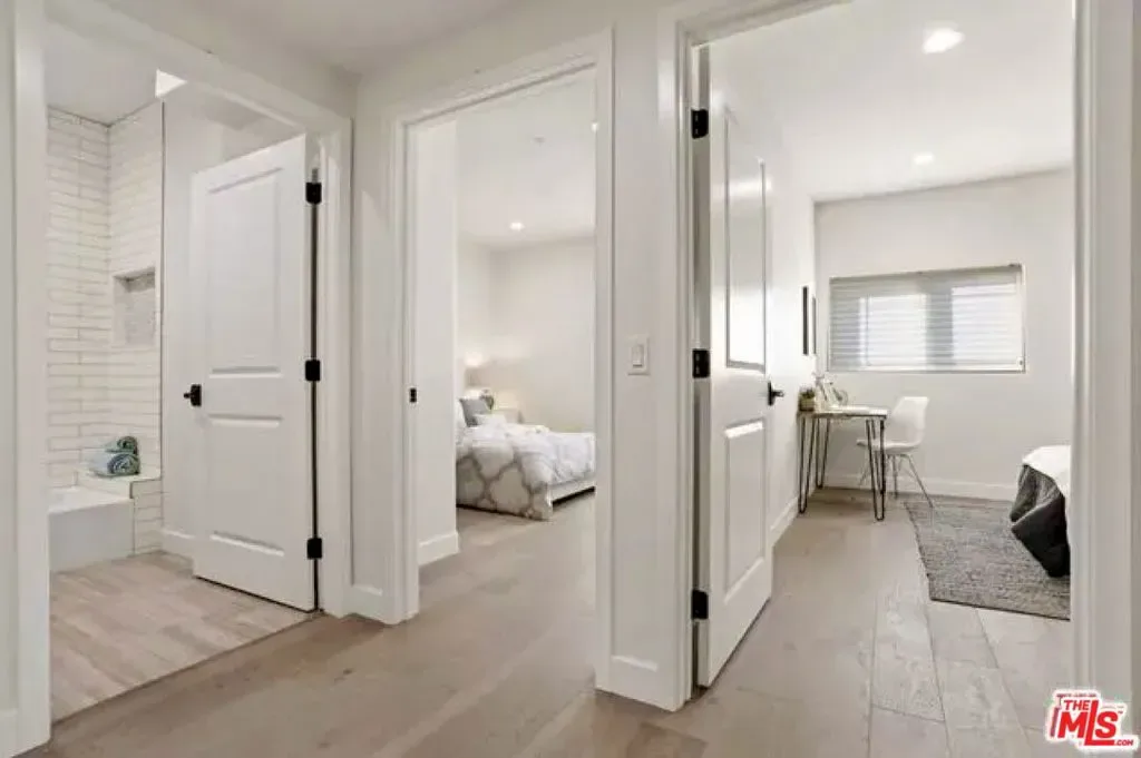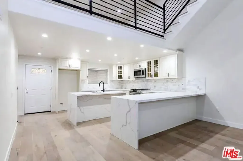 Welcome to this stunning modern townhome located in an exclusive newer construction community built in 2019. This beautifully designed residence offers approximately 2,218 sq ft of bright, open living space with 3 bedrooms, 3 bathrooms, plus a versatile bonus den/loft perfect for a home office, family room, or flex space. The home showcases soaring high ceilings and expansive windows, creating an airy, light-filled atmosphere throughout.What makes this home especially desirable is its prime end-unit location positioned furthest from the street for enhanced privacy, quieter surroundings, and excellent natural light. Due to its orientation, you also have a distant view of the iconic Hollywood Sign, adding a subtle touch of classic Los Angeles charm. Adding even more value, this unit features a private outdoor patio, a rare and highly sought-after upgrade within the community perfect for relaxing, entertaining, or outdoor dining.Inside, the home features:* Soaring high ceilings and abundant natural light* Elegant engineered hardwood flooring throughout* Spacious open-concept floor plan* Gourmet kitchen with quartz waterfall island, natural stone backsplash, and premium cabinetry* Bosch stainless steel appliances, newer LG refrigerator, and Samsung washer & dryer* Designer bathrooms with frameless glass showers* Walk-in closet and generous storage space* Attached side-by-side 2-car garage with direct entryPhotos showing furniture are for illustrative purposes only. The home will be delivered unfurnished.Prime Central LA LocationLocated in a quiet yet highly convenient neighborhood with easy access to major thoroughfares and the U.S. Route 101, making commuting throughout Los Angeles effortless. Enjoy close proximity to some of the city’s most sought-after destinations including Larchmont Village, Hancock Park, Koreatown, Downtown Los Angeles, Hollywood, Miracle Mile, and Los Feliz all known for vibrant dining, shopping, and entertainment.