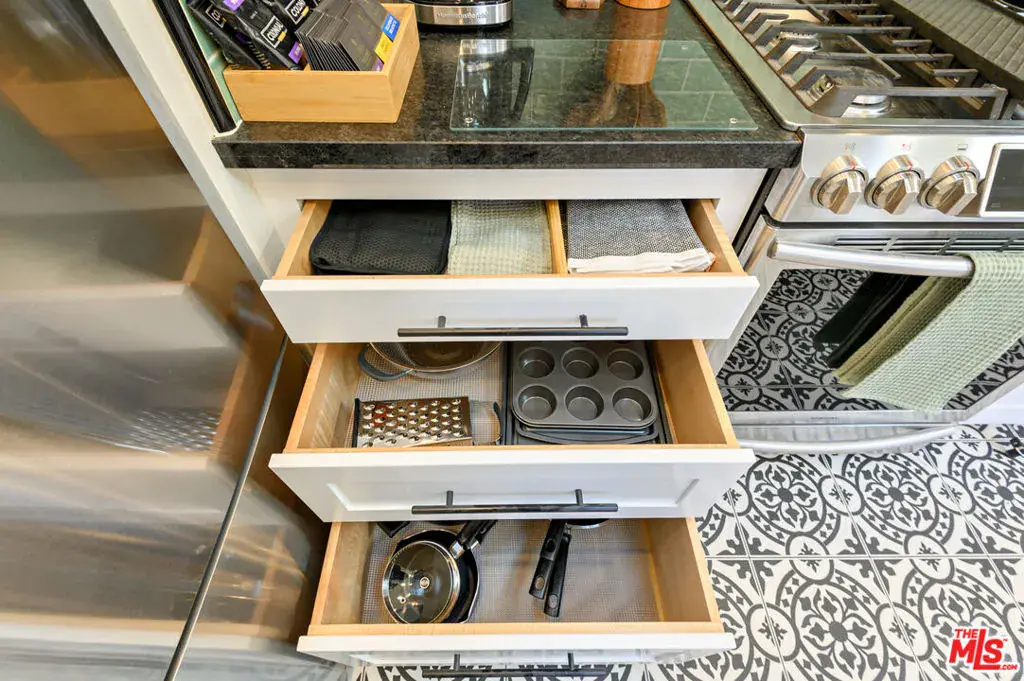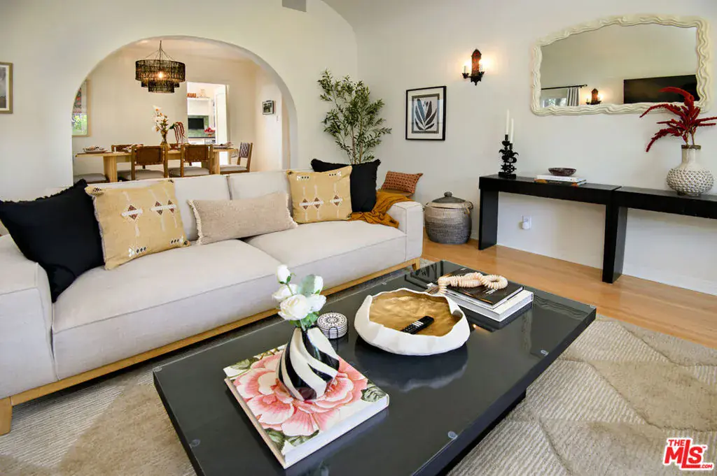 Pristine Spanish-style home on a corner lot in a prime Beverly Grove location. Living room has domed ceilings, fireplace, refinished hardwood floors, and a large picture window facing the street. Separate dining room with coved ceilings and hardwood floors. Remodeled kitchen with black granite counters and green subway tiles, high end appliances, and skylights. Remodeled hall bathroom plus a 3/4 bathroom off the kitchen. Three nice sized bedrooms, all with redone hardwood floors. Small private patio plus a roof top deck on top of the garage. Features include 3.8 kW roof mounted Solar System4.0 kW; Sonnen Home Backup Battery; Honeywell Wired Alarm System; High Efficiency Variable Speed Lennox HVAC system; Rachio Smart Sprinkler Controller; Liftmaster Smart Garage Door opener with Battery Backup; Lorex 8 camera system. New sewer line. All furniture included in sale. Great location close to LACMA, Framer’s Market and the Grove, and all the nearby highly walkable streets. Property is currently rented and can be shown only with an accepted offer.