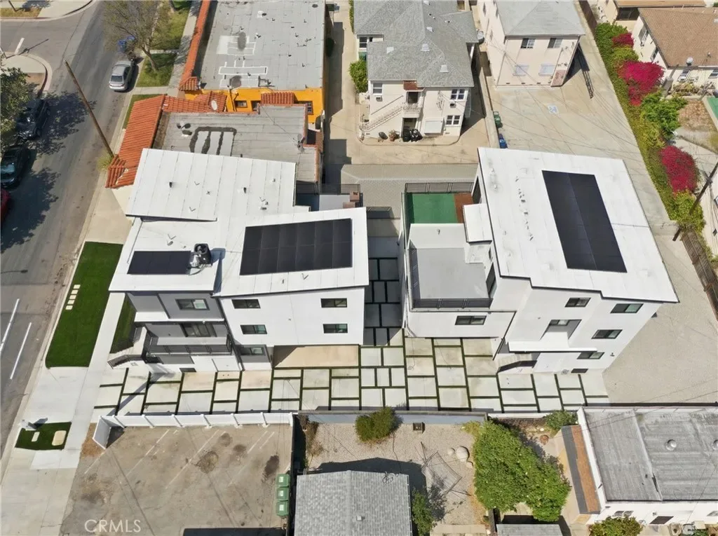 **NEWLY BUILT 2025 LUXURY FOURPLEX | ADU POTENTIAL + CAP RATE UPSIDE + SOLAR PANELS PAID OFF** Exceptional opportunity to own a newly constructed, design-forward fourplex in the heart of Los Angeles, just minutes from Beverly Hills and surrounded by premier dining, shopping, museums, nightlife, and easy freeway access. This modern asset spans approximately 6,048 sq ft across two detached townhouse-style buildings, featuring spacious 3- and 4-bedroom residences designed for today’s rental demand. Unit 5075 offers 1,654 sq ft with 4 beds and 3 baths across three levels, including a first-floor bedroom and bath, open-concept living, private balcony (~98 sq ft), and loft/study; Unit 5075 1/2 offers 1,446 sq ft with 3 beds and 3 baths plus a private rooftop deck (~230 sq ft); Units 5077 (1,485 sq ft) and 5077 1/2 (1,463 sq ft) offer similar expansive 3 bed / 3 bath layouts. All units feature central AC and mini splits, in-unit laundry, modern finishes, and paid-off solar panels. All utilities are separately metered, including water, allowing for a low expense ratio. The property includes two attached 2-car carports plus additional rear parking potential. With low-maintenance new construction, strong rental upside, ADU potential, and an estimated projected cap rate in the ~4.4%–4.8%+ range, this asset offers both immediate stability and long-term growth—ideal for discerning investors and 1031 exchange buyers seeking a premium Los Angeles investment.