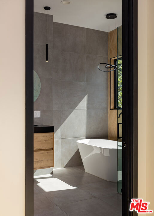 Brand new hillside construction in Mount Washington, located within the coveted Mount Washington School District. Clean lines, big views, and three levels of modern living done right. Perched above the street, this newly built 2,635-square-foot architectural residence makes an immediate impression. A sculptural staircase sets the tone upon entry, while a solid mahogany front door frames a striking indoor fireplace that anchors the living space. Milgard sliding glass doors open wide onto a tiled terrace, blurring the line between indoor and outdoor living and creating an effortless setting for entertaining, set against a backdrop of rolling hills. The kitchen and dining areas flow together over wide plank white oak floors. At the center is a chef’s kitchen featuring dramatic Italian porcelain slab surfaces, a generous island for gathering, and a professional-grade Thermador appliance suite designed for both performance and style. A discreet powder room completes the main level. Upstairs are two secondary bedrooms and a full bath, along with a serene primary suite featuring a private balcony, walk-in closet, and a spa-like bathroom with a freestanding soaking tub, floating oak vanity, and large-format porcelain tile. Above it all, a sweeping rooftop deck wraps from the side of the home to the front approach, capturing layered views of hillside architecture, mature trees, and the distinctive terrain that defines Mount Washington. Wrapped in smooth stucco and modern composite cladding and thoughtfully set into the hillside, this home delivers architectural presence, privacy, and the indoor-outdoor lifestyle buyers are searching for in one of Northeast Los Angeles’ most sought-after neighborhoods.