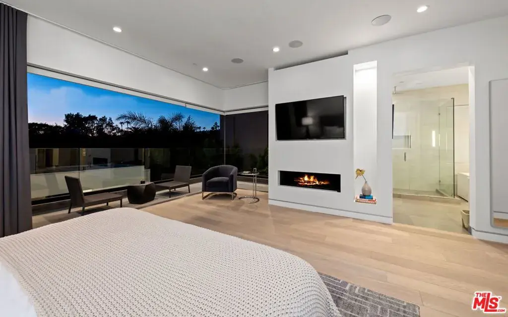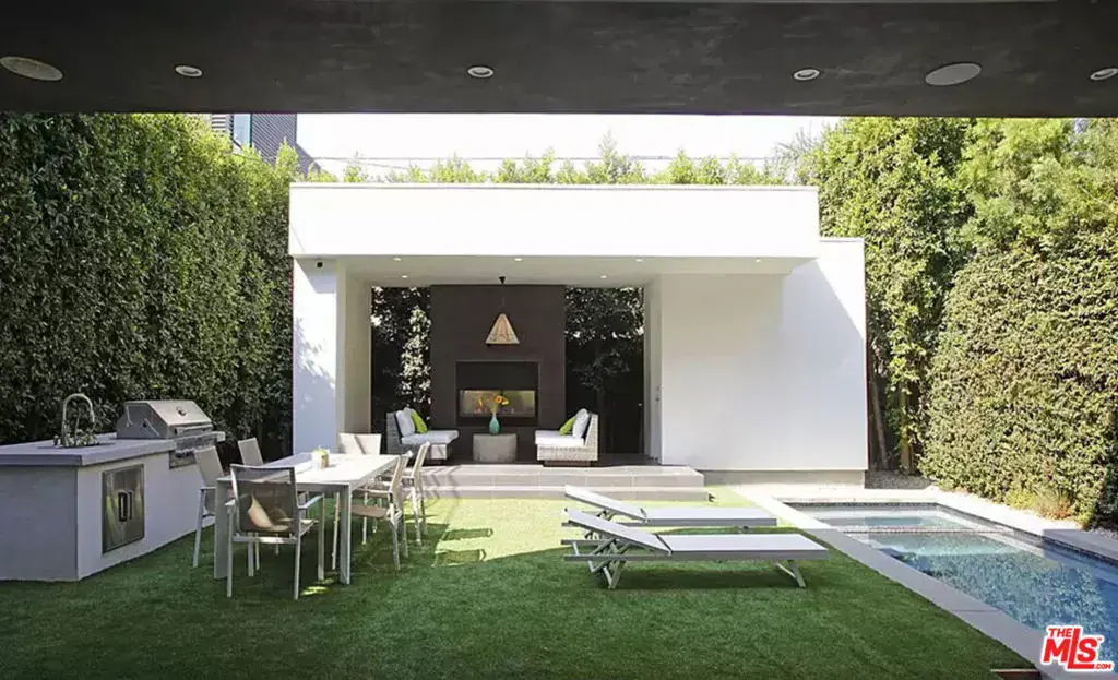 Available fully furnished & turnkey for long-term & short-term leases. Pamper yourself in the exquisite luxury of this modern home. Step behind the gate into the walled privacy of nearly 5,600 square feet of indoor-outdoor living spaces. Grand open plan living areas with grand central staircase, high ceilings, walls of glass, & expansive pocketed Fleetwood door systems connect you with two open air garden courtyards and the secluded back yard with pool, spa, 230 square foot cabana with fireplace, & BBQ are ready to serve you whether you’re relaxing or entertaining. The 1,100 square foot rooftop deck with outdoor bar & fire pit is ideally suited to lounging or celebrating under the sun or stars. Retire to the sumptuous master suite with large private balcony, & spa-style bath while 4 guest rooms await your family & friends. Custom designed, fully furnished, & tastefully decorated, this wonderful home includes: gourmet kitchen with Miele appliances, oversized center island & large pantry; 3 fireplaces (2 Ortal); powder room; imported designer bath tiles & fixtures; hardwood floors; outdoor fitness areas with yoga mat for free weight & resistance band training, & state-of-the-art Crestron home automation system for your comfort.
