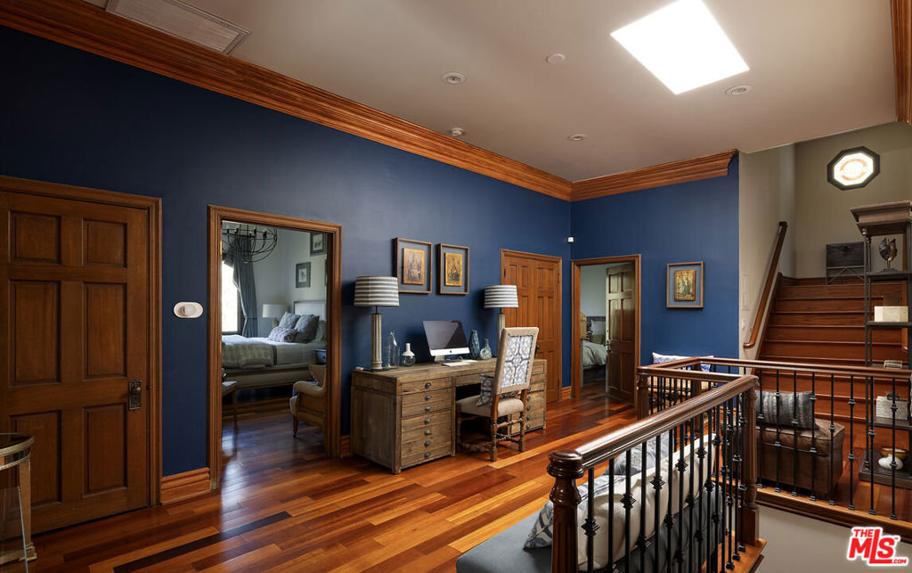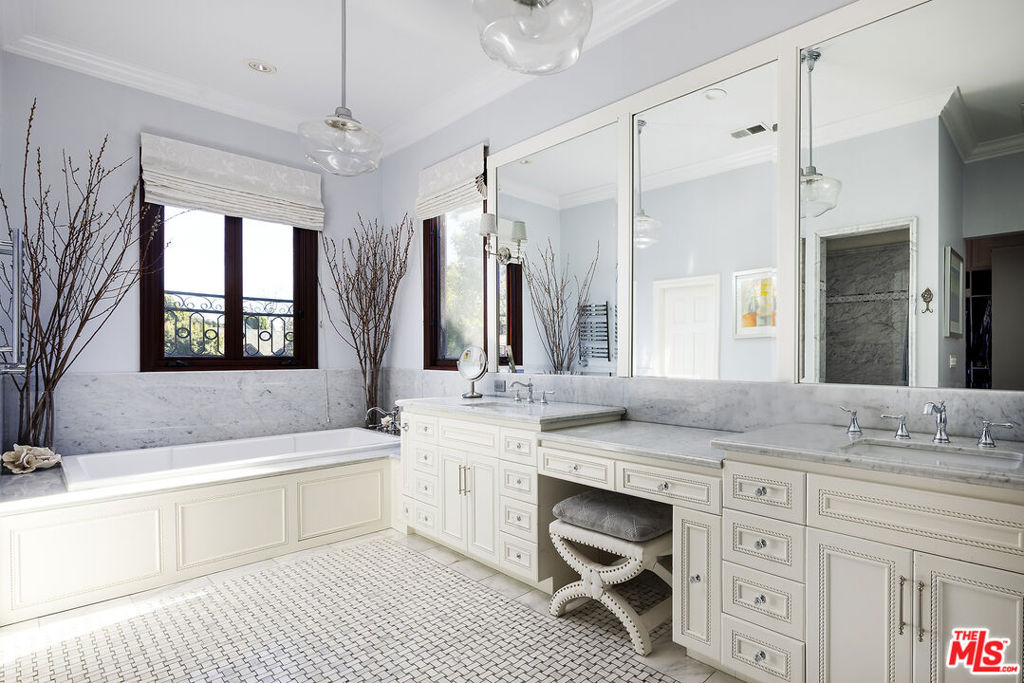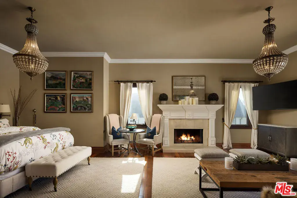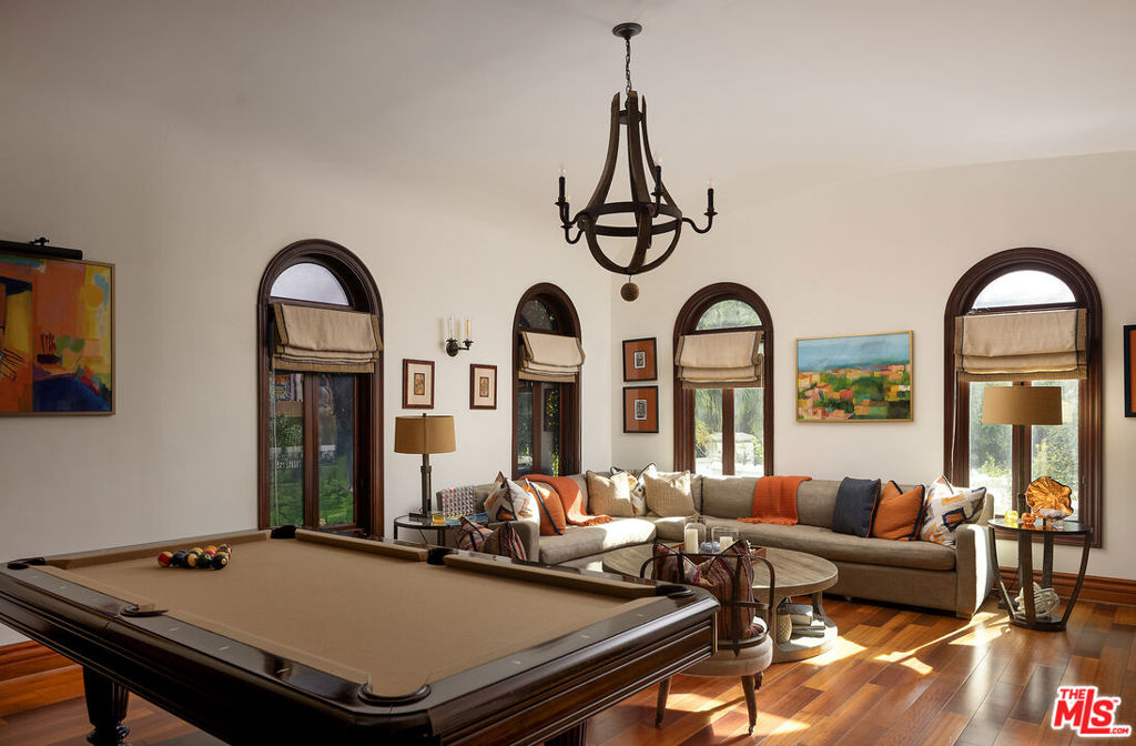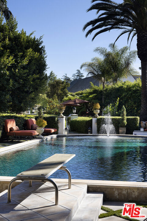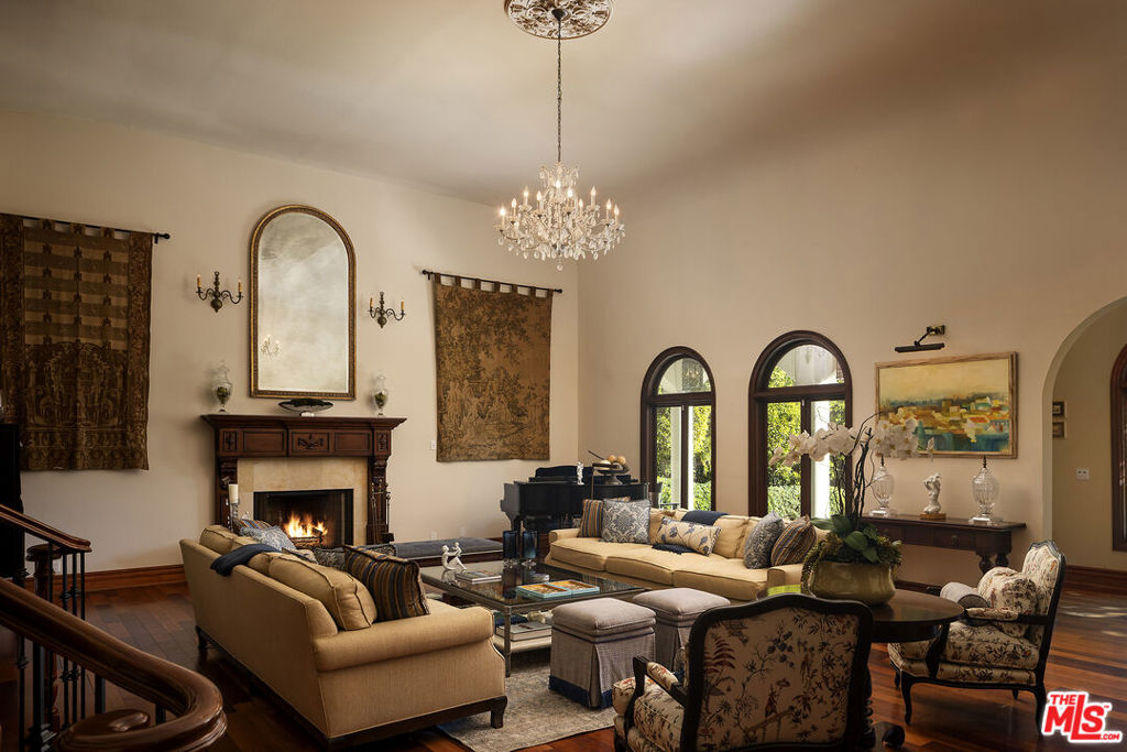 A significant price adjustment promises lasting value at this exceptionally renovated, move-in-ready 1920s estate. Sited on two-thirds of an acre in coveted Hancock Park, these quiet, tranquil grounds are enveloped by lush landscaping with pristine gardens, multiple sitting areas, a large outdoor living room, pool, grassy lawns, and a variety of spaces to roam, relax, and entertain in total privacy. Classic charm abounds throughout this peaceful entertainer’s manse with fine finishes and premier amenities so characteristic of this distinctive, storied enclave near the Wilshire Country Club and Larchmont Village. Set behind privacy gates with an expansive motor court and circular drive, this legacy property underwent an extensive restoration by its present owners, preserving its rich architectural importance and heritage. A festooned porte-cochere proceeds to the home’s enchanting portico for receiving guests. Inside, rich hardwood floors flow from the formal entrance hall and into the grand formal living room with high ceilings, double staircase, distinctive fireplace, and a series of archways that set the tone for the whole of the residence. Volume abounds throughout. A large family room has French doors that open to the outside, adjacent to the country kitchen with glass-paned cabinetry, center island with pet nook, state-of-the-art appliances including cooktop and warming drawer, and attached mudroom leading to al-fresco dining areas. Nearby, the formal dining room includes temperature-controlled wine storage, and a proper wood-paneled wet bar is configured with a tasting ledge seating three. Lounge or play pool in the billiards room, or work and study in the home office. Upstairs, the owner’s wing has a sitting area with traditional fireplace and opens to its own private terrace overlooking the rear grounds. Its en-suite bathroom features a dual-sink vanity with makeup desk and separate tub and shower, and a walk-in closet is appointed with custom built-ins. A beautiful junior primary bedroom includes soaring vaulted ceilings and a fireplace with elegant marble mantle. One of the secondary bedrooms also has its own spacious balcony and opens to a Hollywood-style bathroom, and a flex space can be utilized as a pajama room or second office. There is even a bonus television/card room with a bathroom and dry sauna. Outside, curated park-like grounds offer endless special moments for rejuvenation and hosting numerous party guests in a magical setting. Enjoy an outdoor living room with wood-burning fireplace and motorized patio shades, an outdoor dining room, and sprawling grassy lawn. A European villa-style saltwater pool is pebble-finished and centered by an elegant water feature, the recreational space encircled by diamond pavers, garden vases, and pristine hedges. Other outdoor amenities include a large built-in barbecue, soothing fountain, various outdoor sitting areas, gardens, pathways, and dog run. Relish a peaceful way of life in this iconic historical neighborhood, the original choice of the city’s founders and cherished by Los Angeles royalty for generations.