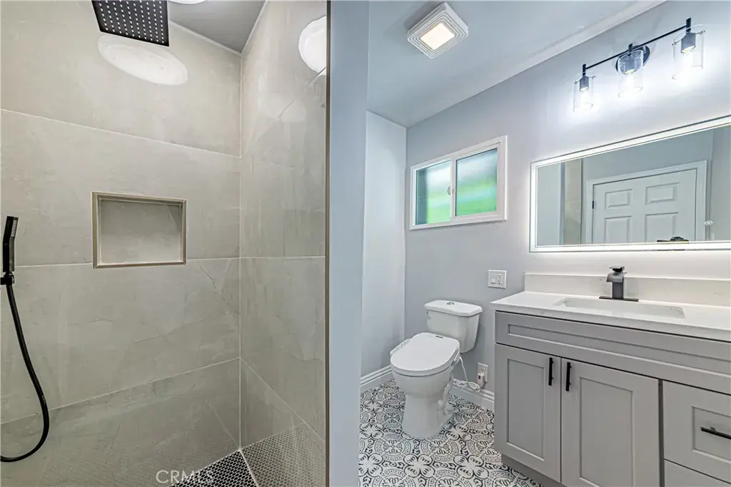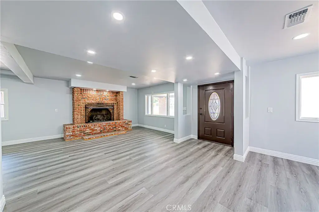 Situated in/around the highly desirable View Park–Windsor Hills neighborhood, this move-in ready home is just minutes from SoFi Stadium and Downtown LA. The home’s charming exterior features a welcoming front porch and a private side patio adorned with classic red brick. Step inside to a fully renovated interior with brand-new flooring, new central AC, new tankless water heater and new roof. The living room showcases a striking floor-to-ceiling original red brick fireplace. The modern kitchen is a chef’s dream, boasting quartz countertops, brand-new stainless-steel appliances, and an open-concept layout that flows seamlessly into a large family room—ideal for entertaining and family gatherings. The first floor offers a versatile layout with bedrooms and a full bath—perfect for guests, a home office, or multigenerational living. Additional rooms provide flexibility for extra bedrooms, a gym, or a home office. Upstairs, the master bedroom features a spacious ensuite bathroom. 2 additional generously sized bedrooms also offer walk-in closets, and the upstairs common bathroom has been fully remodeled with a dual-sink vanity and modern finishes. Outside, a remote-controlled