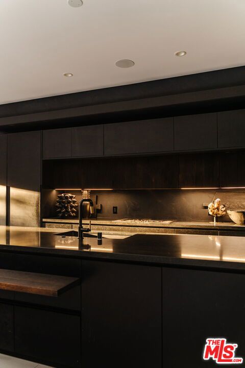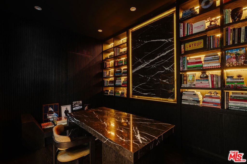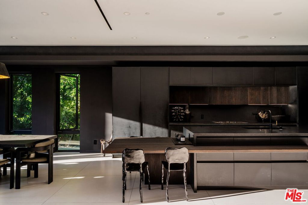 Welcome to 537 N Alta Vista Blvd, an exquisite modern masterpiece built in 2020, offering 4,312 sq ft of curated living space on a secure and gated 7,700 sq ft lot. Through the striking smoked-glass accent entry door, guests are welcomed into a generous open floor plan featuring soaring ceilings and designer finishes throughout. Just off the entry is a sophisticated office featuring custom built-in shelving crafted from Japanese flamed shou sugi ban wood, black Venato marble accents, custom lighting, and a recording studio. The sleek gourmet chef’s kitchen is equipped with dual wall ovens, an espresso machine, a custom walk-in pantry, and an oversized center island with a prep sink and integrated breakfast table. The kitchen flows seamlessly into the dining area and spacious living room, complete with a stone fireplace, custom bookshelves, and floor-to-ceiling pocket doors that open to the ultimate entertainer’s backyard. Upstairs, the luxurious primary suite features a dramatic custom wall of raw Pierre Blue stone imported from Belgium, bespoke Japanese flamed shou sugi ban woodwork, a projector screen, fireplace, private balcony, and two generous walk-in closetsone of which includes a custom pink rose onyx makeup room. The spa-like primary bath offers a custom dual vanity with Black Zimbabwe stone, heated floors, a Japanese soaking tub, an oversized glass rain shower, and a separate water closet with a Toto toilet. Two spacious en-suite guest bedrooms complete the upper level. Designed for year-round entertaining, the oversized backyard features a sparkling pool with elevated spa, outdoor BBQ center, grassy lawn, fire pit, and an enclosed cabana with outdoor bathroom. Additional amenities include a koi pond, security cameras, osmosis water filtration system, and surround sound throughout. This home exemplifies the very best of California living, located near some of the world’s finest restaurants, shopping, and entertainment. Showings by appointment only with 24 hours notice.