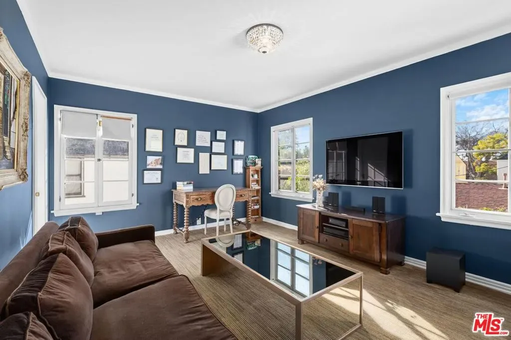 This exquisitely restored Spanish residence sits on a prime tree-lined street in Hancock Park, blending timeless 1920s architecture with refined modern touches. The home offers four bedrooms and three bathrooms spanning over approximately 3,500 square feet. Inside, classic details abound, from arched passageways and richly hued hardwood floors to exposed wood beams and handcrafted tilework along the grand staircase. A gracious living room centers around a fireplace framed by original casement windows, while the chef’s kitchen opens to a sunlit family room for effortless flow. French doors lead to a private, lushly landscaped patio, a peaceful retreat perfect for relaxing or entertaining.