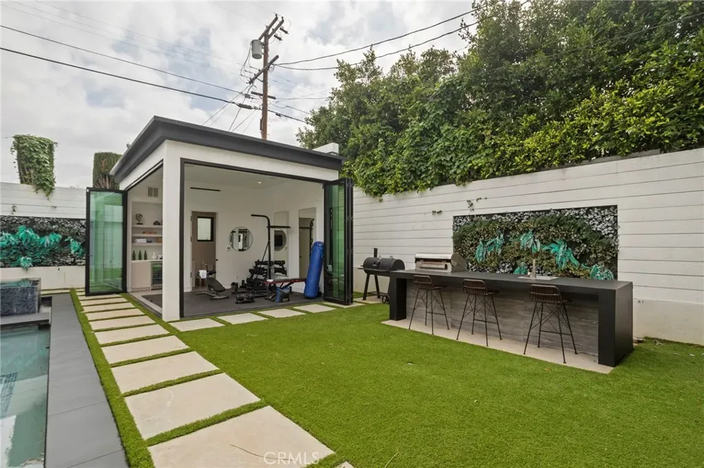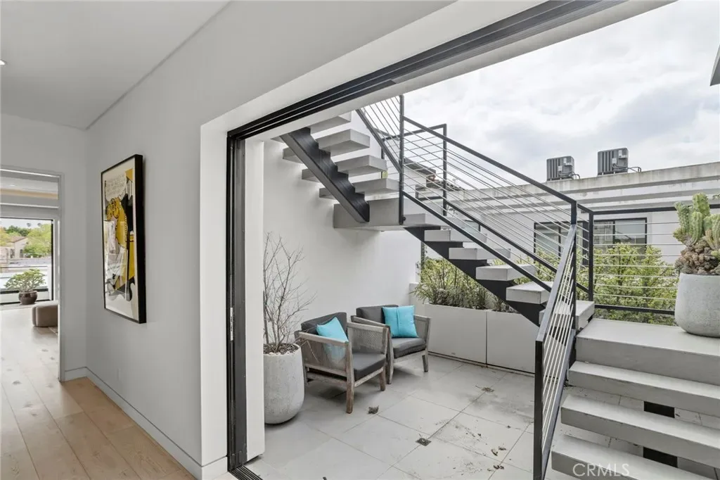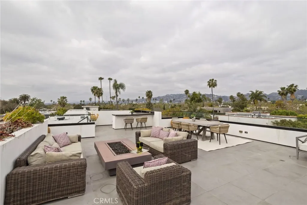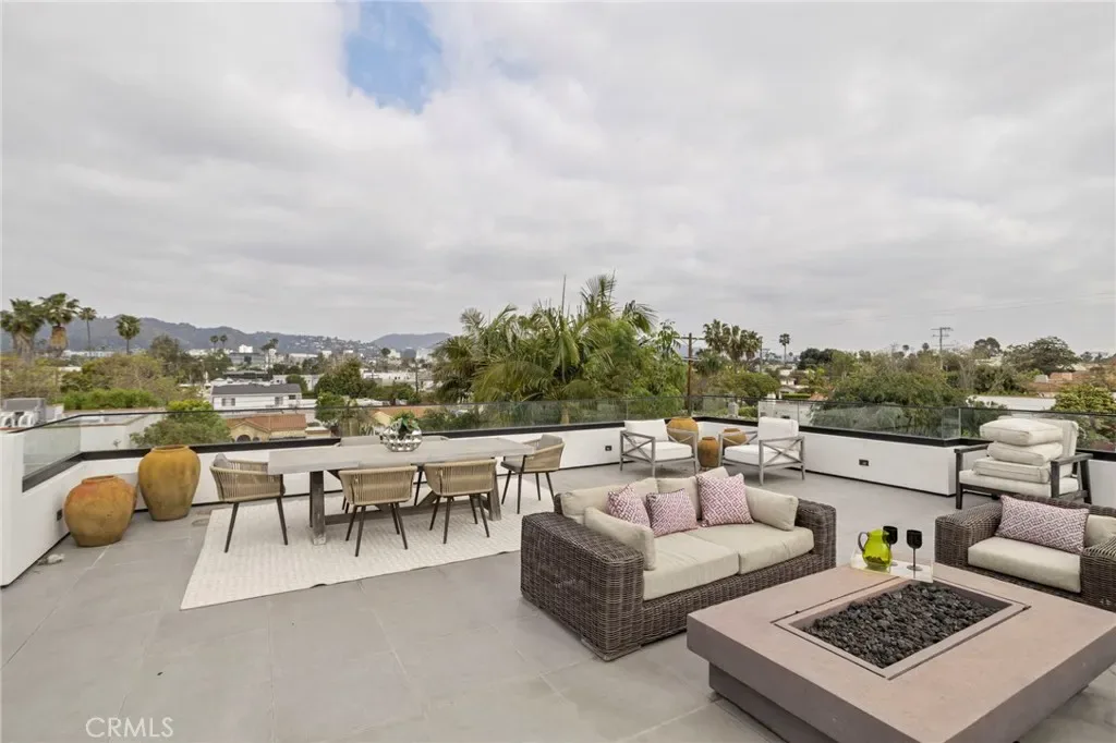 Introducing 538 N. Alta Vista Blvd, a striking modern estate in the heart of Beverly Grove. Privately positioned behind dual gates, this 5-bedroom, 6-bathroom residence offers approximately 4,700 square feet across the main home and guest house/ADU, blending architectural sophistication with true resort-style living. A dramatic 10-foot pivot glass entry opens to a grand foyer and floating glass staircase, while expansive Fleetwood pocket doors, Venetian plaster walls, and designer finishes elevate the home throughout. The chef’s kitchen features backlit Italian cabinetry, Carrara marble waterfall countertops, and top-of-the-line Miele PureLine appliances including dual ovens, espresso station, and integrated refrigeration. The soaring living room with a see-through fireplace opens to a spectacular backyard with a 70-foot saltwater lap pool, dual spas, grilling lounge, turf areas, covered cabana, and detached ADU/yoga studio. Upstairs includes three junior suites, a spacious laundry room, and a luxurious primary retreat with wraparound balcony, oversized custom closet, linear fireplace, and spa-like bath with steam shower, soaking tub, dual Italian vanities, and Graff fixtures. The rooftop deck is an entertainer’s dream with wet bar, refrigeration, fire pit, surround sound, and iconic Hollywood Sign views. Complete with Control4 smart home functionality, Denon Pro audio, and 4K live-streaming security. Furnishings and artwork available upon request.