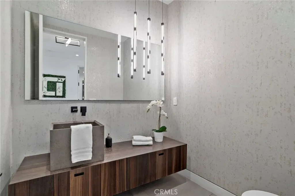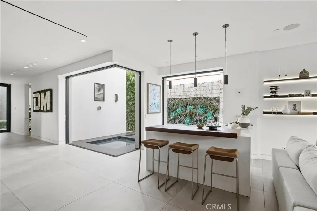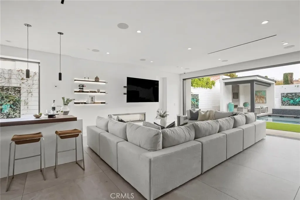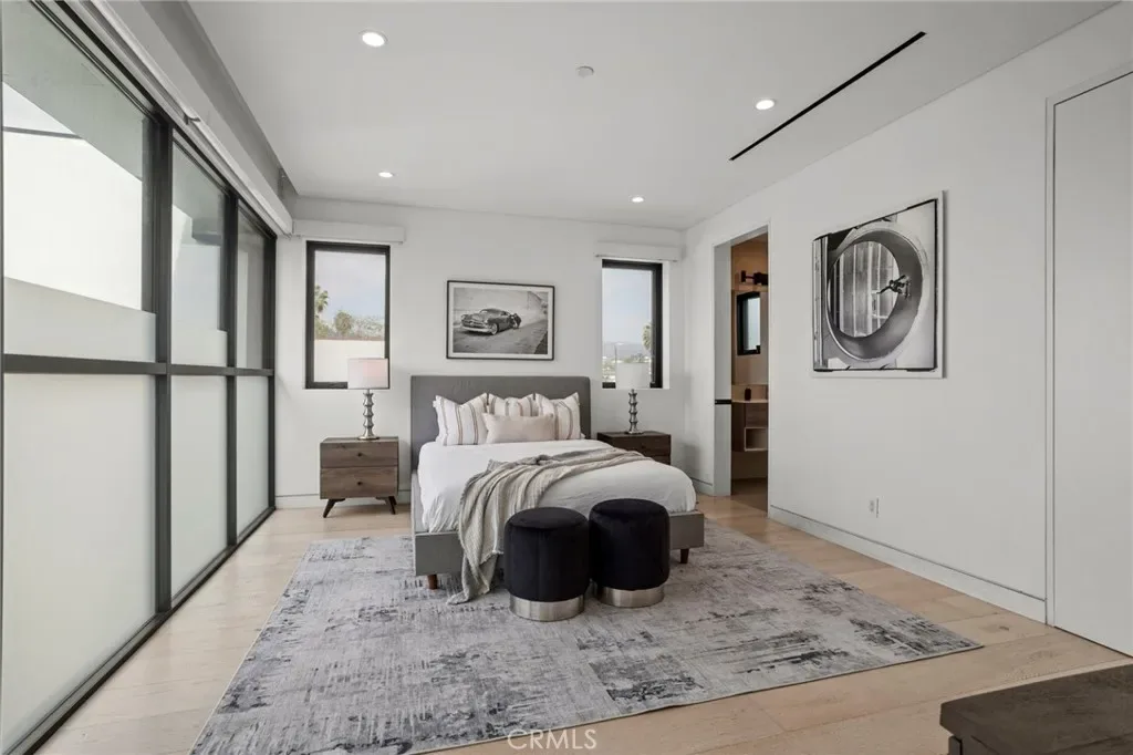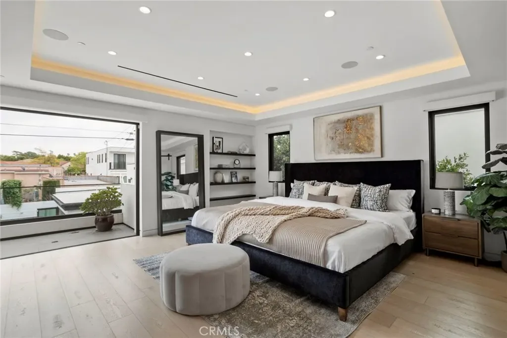 Introducing 538 N. Alta Vista Blvd, a striking modern estate in the heart of Beverly Grove. Privately positioned behind dual gates, this 5-bedroom, 6-bathroom residence offers approximately 4,700 square feet across the main home and guest house/ADU, blending architectural sophistication with true resort-style living. A dramatic 10-foot pivot glass entry opens to a grand foyer and floating glass staircase, while expansive Fleetwood pocket doors, Venetian plaster walls, and designer finishes elevate the home throughout. The chef’s kitchen features backlit Italian cabinetry, Carrara marble waterfall countertops, and top-of-the-line Miele PureLine appliances including dual ovens, espresso station, and integrated refrigeration. The soaring living room with a see-through fireplace opens to a spectacular backyard with a 70-foot saltwater lap pool, dual spas, grilling lounge, turf areas, covered cabana, and detached ADU/yoga studio. Upstairs includes three junior suites, a spacious laundry room, and a luxurious primary retreat with wraparound balcony, oversized custom closet, linear fireplace, and spa-like bath with steam shower, soaking tub, dual Italian vanities, and Graff fixtures. The rooftop deck is an entertainer’s dream with wet bar, refrigeration, fire pit, surround sound, and iconic Hollywood Sign views. Complete with Control4 smart home functionality, Denon Pro audio, and 4K live-streaming security. Furnishings and artwork available upon request.