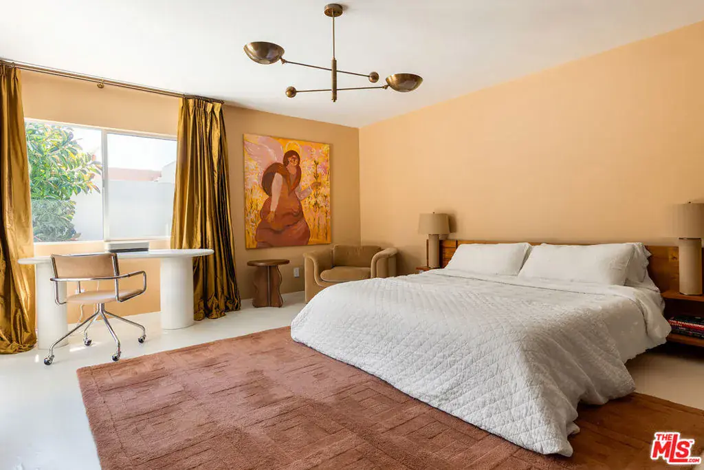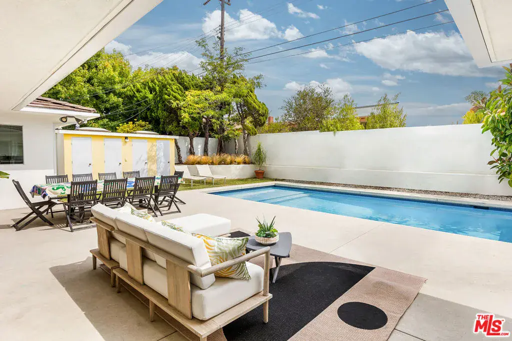 Reduced Price Alert! Mid-Century Modern meets Palm Springs So Cal living. This is not a flip, the house was completely renovated by the previous owner for themselves combining Bauhaus & Scandi design elements with a select handful of the original Mid-Century details. This home is thoughtful, simple and minimalistic on purpose with completely updated modern systems inside. Everything from the windows and doors to the electrical and plumbing, remodeled bathrooms, HVAC, and salt water pool and floor plan were updated placing the new kitchen next to the living/dining on the pool side of the home. You can’t get better than a South facing house in LA, they are hard to find…continuously light and airy ALL year long, sun in the yard, sun in the living room, kitchen, main living areas and in the primary bedroom. So Cal at it’s best. Open the doors and windows and enjoy an incredibly expansive open feel that comes with seamless transitions between the bright indoor spaces and balanced sunny outdoors. Central to the floor plan are the living and dining rooms with the repaired “original facade” brick and arroyo stone Mid-Century fireplaces in-between. Open to the dining room, the “Chef” of the house can entertain in the remodeled modern kitchen which minimalist Architectural Ply “drawer in drawer” cabinetry, 1/2 inch square-edge countertops, integrated “invisible” appliances, and a corner built-in dining area. The space truly offers a quiet reprieve from the city with ample space for entertaining and living. Bonus features include a den/office, full laundry/utility room w/service entrance, primary bedroom with direct pool access, multiple closets, and an ensuite bath w/curb-less shower. In addition you have a 2 car driveway + 2 car garage w/ breeze-block wall, and an incredible amount of storage and closet space throughout the entire home. If you like to entertain or have quiet evenings at home, or work from home, the house is flexible from cozy and intimate to open and inviting for Bbq’s or cocktail parties poolside. This one speaks to us, located on a superbly quiet street, thoughtfully designed, understated and simple, there are exceptional touches showing the depth of the remodel from the museum floor to oversized sliders in the living room and the Venetian plaster bathroom. Spending time here is like a breezy Palm Springs vacation all the time. We love the micro-concrete “museum cloud” floors, they anchor the rooms and are incredibly versatile to compliment art, decor, collectables, and most modern styles with ease. Come see for yourself. You will find a superb house, with wonderful sunlight and an incredible floor plan located on a fantastically quiet street.