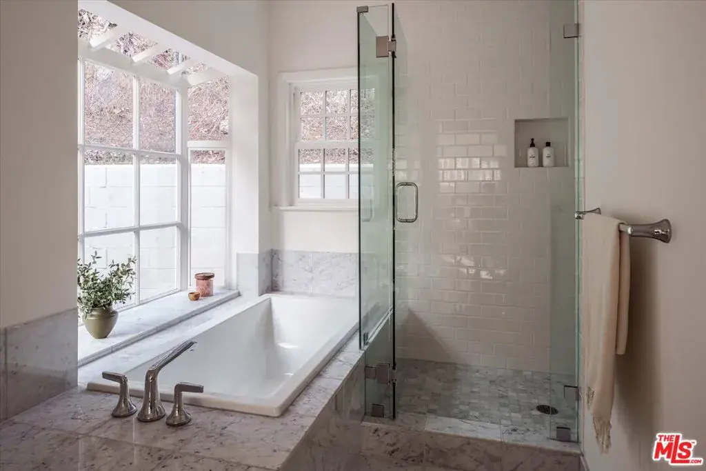 A rare, newly restored lease opportunity located in the heart of The Oaks, an exclusive, celebrity-favored Los Feliz enclave. This 3-bedroom, 3-bathroom mid-century residence set on a verdant, private lot is a masterclass in stylish, effortless living, blending classic architectural elements with modern refinements. Soaring 12-foot beamed ceilings enhance an expansive living and dining space, offering a seamless indoor-outdoor flow in one of Los Angeles’ most sought-after neighborhoods, just moments from Griffith Park’s scenic trails and quaint Franklin Village. Warm-toned solid oak floors complement the striking brick fireplace, which anchors the airy interiors. French doors in the dining area open to a sprawling brick patio, perfect for alfresco gatherings. The elegant, light-filled chef’s kitchen with ample bay window and skylight features a Wolf 36″ stainless steel range and hood, Thermador French-door refrigerator, Thermador dishwasher and custom wood cabinetry with three full pantry units. Its peninsula seats two and a charming breakfast nook can accommodate six. Each of the three bedrooms offers its own ensuite bath with Carrara marble vanities and flooring. The primary suite is a tranquil retreat with a spacious walk-in closet and additional closet for optimal storage. French doors lead to a secluded brick patio, a private escape for morning coffee. The ensuite bath is a spa-like haven, with a double-sink marble vanity, deep soaking tub and expansive glass-enclosed shower with dual shower heads. The second ensuite bedroom boasts garden views and generous closet space, while the versatile third ensuite bedroom, with its beamed ceiling, cozy reading nook, and dual-exposure windows, could be ideal as a guest suite or home office. The finished 430-square-foot garage, with terrazzo-style epoxy floors, presents additional possibilities as a studio, gym or living space. A separate 100-square-foot finished storage room adds convenience and flexibility. The gated, fully-fenced backyard is highlighted by multiple brick patios and lounging areas framed by lush landscaping. Further upgrades include new copper plumbing, a top-of-the-line HVAC system, Wi-Fi-enabled security system and recessed lighting and designer fixtures throughout. 5657 Valley Oak provides an exceptional chance to lease a turnkey mid-century masterpiece in a neighborhood known for architectural gems and multimillion-dollar estates. This is The Oaks at its finest. Lease term of 13+ months.