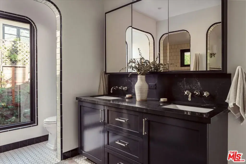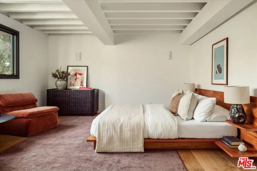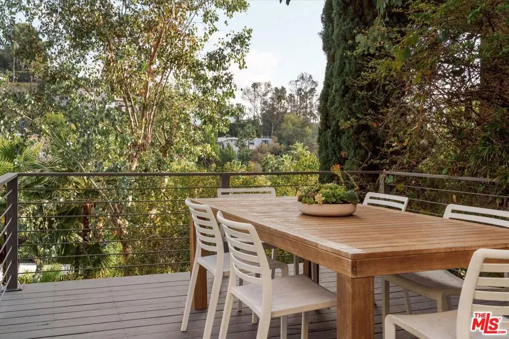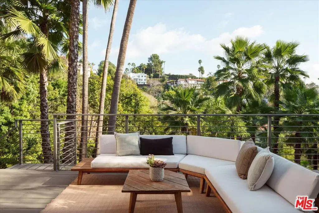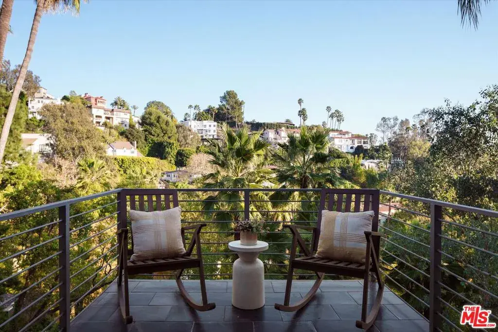 New listing! In the hills of Los Feliz, an upgraded c. 1953 midcentury with striking designer details. Fabulous entertaining spaces can be found throughout the 10,000+sf terraced lot with large pool and multiple lounge areas among green landscaping and swaying palm trees. The main level reveals panoramic hillside views, with the open living and dining area featuring tongue and groove ceiling, gas burning replace and wide plank engineered oak flooring. The newly expanded kitchen is elegant and cheerful with rich blue cabinetry, eat-in island, wine fridge, and skylight, Thermador appliances, and provides direct access to the garage with laundry. Off the kitchen, the upper balcony is perfect for your morning coffee. The primary bedroom suite offers a robust walk in closet, corner windows overlooking the pool, and a showpiece vintage inspired tiled bathroom with soaking tub, separate shower, and dual sink vanity. The lower level of the home offers an additional den space with sliders opening to an outdoor lounge area. Two large bedrooms with ample closeting and a guest bathroom complete the home. The manicured outdoor areas are the perfect complement to this home’s striking interiors. Alongside the sparkling pool is a covered cabana, sunny deck for poolside lounging, a grassy side yard, and a dining terrace. New seller updates include newer plumbing, electric, windows and doors, kitchen, primary bath and more. Life in the coveted Los Feliz Oaks offers the best of both worlds: peace and privacy surrounded by nature, just minutes from Griffith Park’s trails, plus a quick commute into the heart of Hollywood.