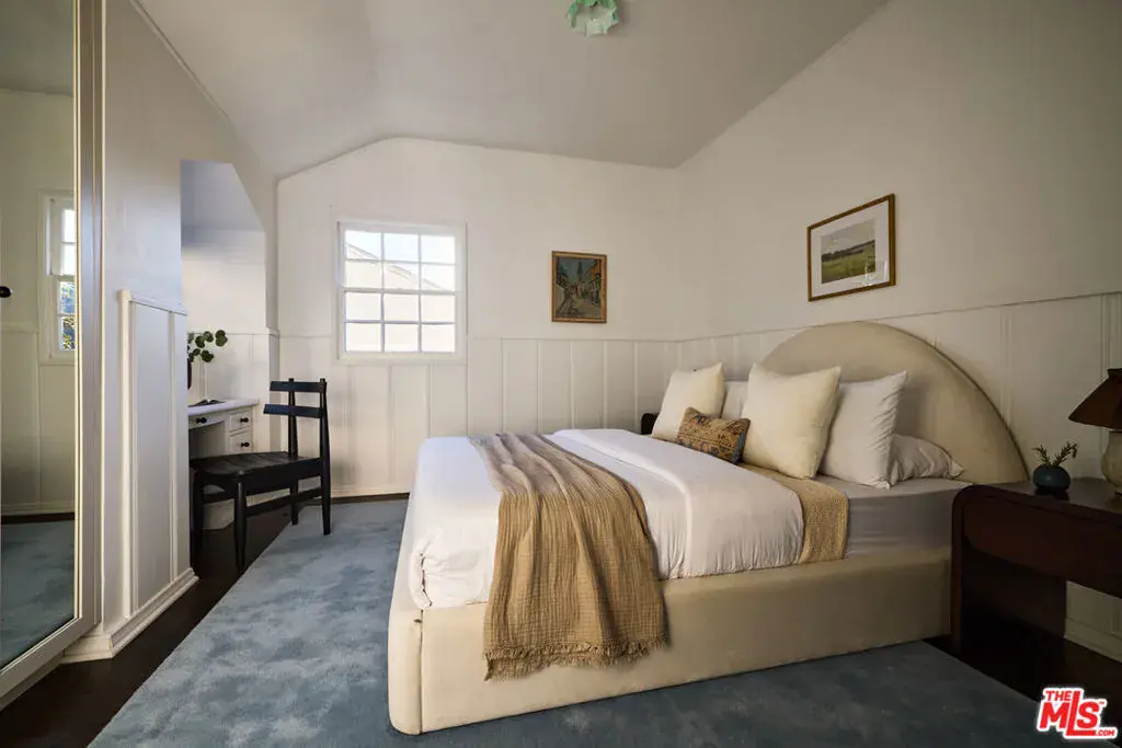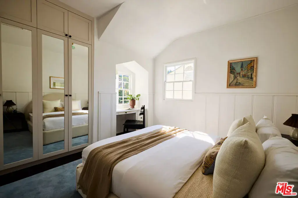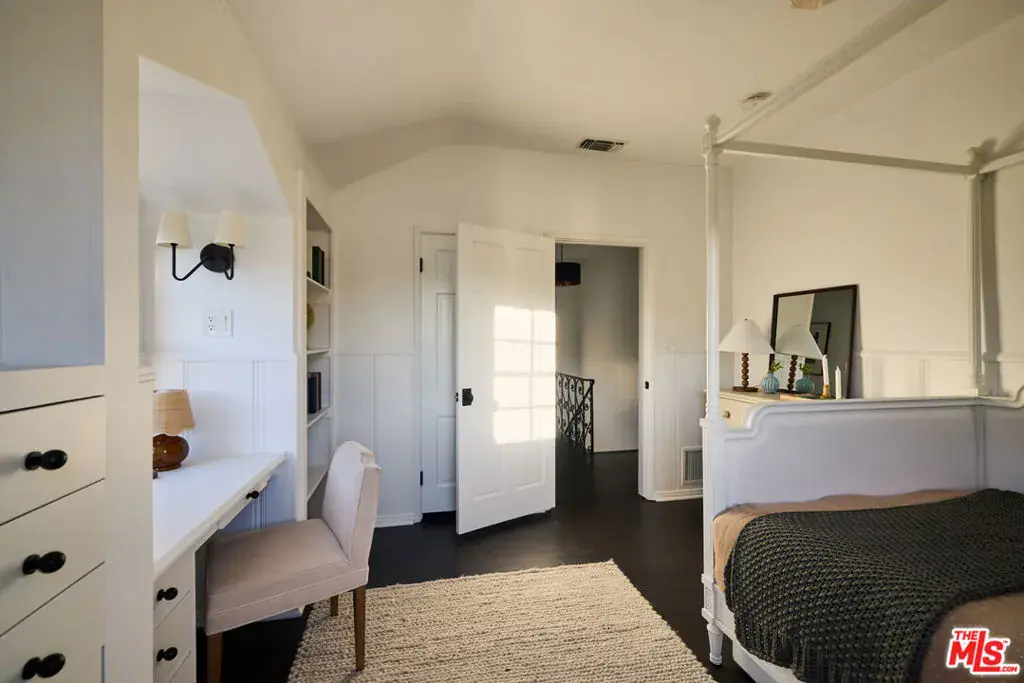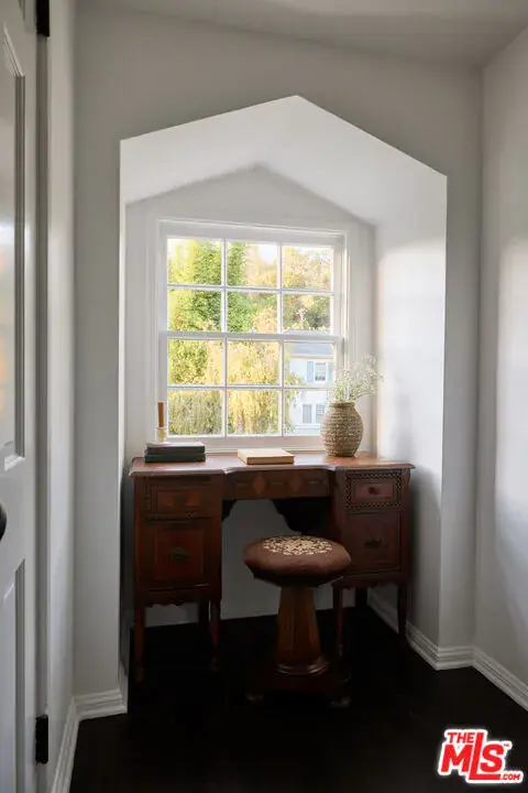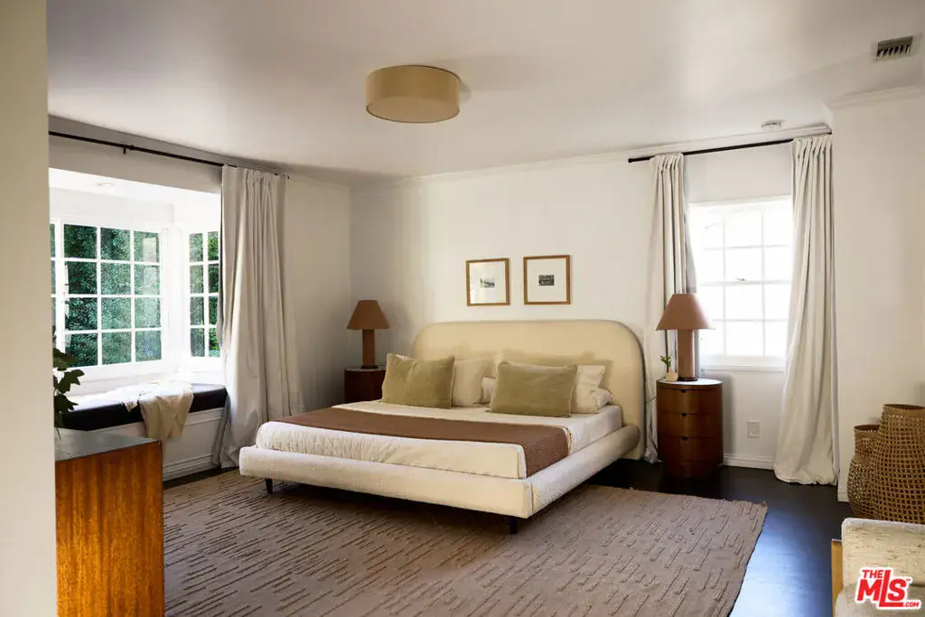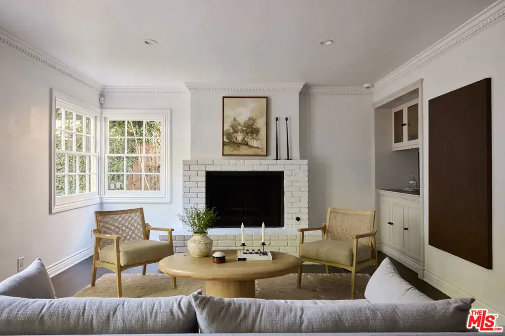 This beautifully restored 1939 Traditional home sits on a charming street in the Los Feliz Oaks, one of the most coveted neighborhoods. Designed by renowned designer Estee Stanley, the home blends timeless character with thoughtful, modern updates. The main level features a bright and welcoming living room with a marble fireplace, and a formal dining room that opens to a fully equipped kitchen with marble countertops, a farmhouse sink, and a spacious pantry. The comfortable family room includes a built-in desk and bookcase, a fireplace, and French doors that open to the backyard and pool, creating an easy flow between indoor and outdoor living. Upstairs, the primary suite offers a generous walk-in closet and a serene bath with marble floors and an oversized tub. A second primary suite and two additional bedrooms sharing a hall bath complete the upper level. Outside, a peaceful garden patio leads to the terraced pool and spa, surrounded by mature trees that provide privacy and a lush, tranquil backdrop.