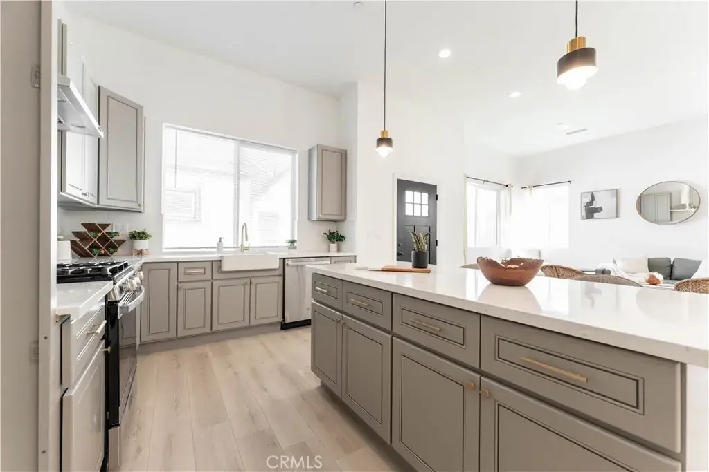 The newly constructed detached SB9 primary residence features 3 bedrooms and 3 bathrooms across approximately 1,600 square feet, designed with modern elegance and functionality in mind. Soaring 12-foot ceilings, an open-concept living area, and abundant natural light create an inviting atmosphere throughout. The kitchen is appointed with brand-new stainless steel appliances, sleek cabinetry, and contemporary finishes. Two private master suites, each with its own bathroom, one featuring a dual vanity, plus an additional guest bedroom and bath, offer comfort and privacy for every family. Built with sustainability in mind, this home includes solar panels, fire sprinklers, a water-recycling planter system, separate metered utilities, a covered rear patio, and ample storage, ensuring both efficiency and peace of mind.