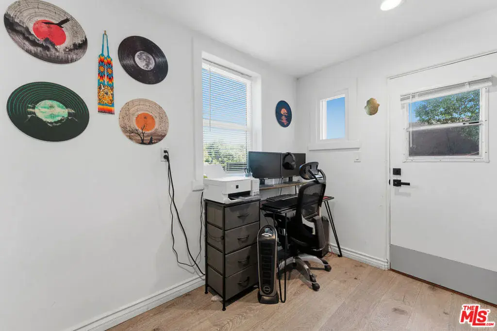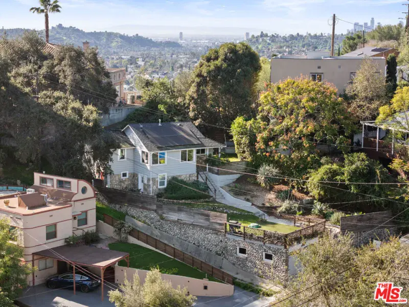 In the hills of Highland Park, this remodeled cottage-style home offers sweeping hillside and mountain views from nearly every room. The main level features two bedrooms with custom closets, brand new luxury vinyl flooring, light-blocking blinds, and serene outlooks, while the open living and dining areas flow into a bright kitchen with bar seating. The lower level includes a third bedroom with a private entrance, ideal for a home office, studio, gym, and a large additional storage space. Step out to a covered patio and garden that wraps to the front entrance, with mountain views as the backdrop. Featuring an expansive street-to-street lot with a backyard terrace above, revealing panoramic DTLA views–perfect for extra parking, relaxing, or entertaining. Additional highlights include solar panels for energy efficiency, four parking spaces, and a prime location near hiking trails and just minutes to downtown, blending hillside tranquility with city convenience.