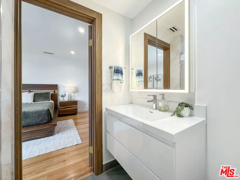 Welcome to this Sleek and Clean Mid-Century Pool home c. 1959 with undeniably timeless appeal, architecture and elegance. A recent appraisal has valued the home at $2.75 Million. Main residence features 2650 sf and 4bd 4 1/2ba. Private ADU above garage features 480 sf and 1bd1ba. This home showcases the most desired characteristics of a Mid-Century home with no expense spared. It has a clean minimalist aesthetic with gleaming original hardwood floors throughout. BELLDINNI MODERN interior and closet doors emphasize elegance and simplicity while providing superior performance, durability, and ease with MORELLI magnetic locks. A major emphasis on bringing the outdoors in and connecting to nature with large ANDERSON windows and sliding glass doors providing a scenic pool view and buckets of natural light. Open floorplan featuring two large family rooms, two fireplaces, dining area, expansive kitchen with 9ft island w/ beautiful waterfall edges, full wall backsplash, built-in bar area, and JENNAIR Appliances. All bedrooms have ensuite bathrooms for complete privacy. Luxurious primary ensuite with jetted bathtub and floor to ceiling tile. Primary bedroom features a walk-in closet and a full wall closet and all closets in the residence have custom closet organization systems. Sparkling pool, Central HVAC System, recess lighting, fresh exterior stucco, decorative lighting, private gated entry, and surveillance cameras!!! The pool has been resurfaced with updated plumbing and lights. There is a covered patio, faux grass area, and outdoor kitchen perfect for entertaining. The two- car garage has been finished with 240V outlets for electric car charging. Also save on electricity bills with environmentally friendly PAID SOLAR PANELS. There is a brand new ADU above the garage withe private entry, beautiful city views featuring 1bd1ba, full kitchen, laundry hookups, and mini split system. It’s perfect for a rental, in-law suite, or private office. Come see it while it is available!