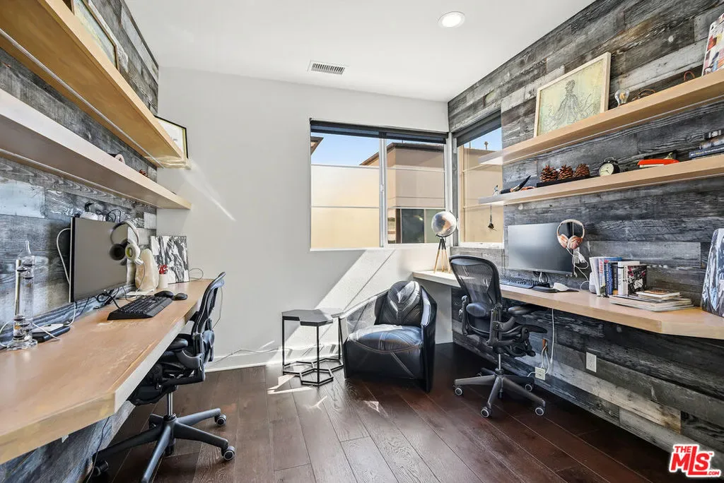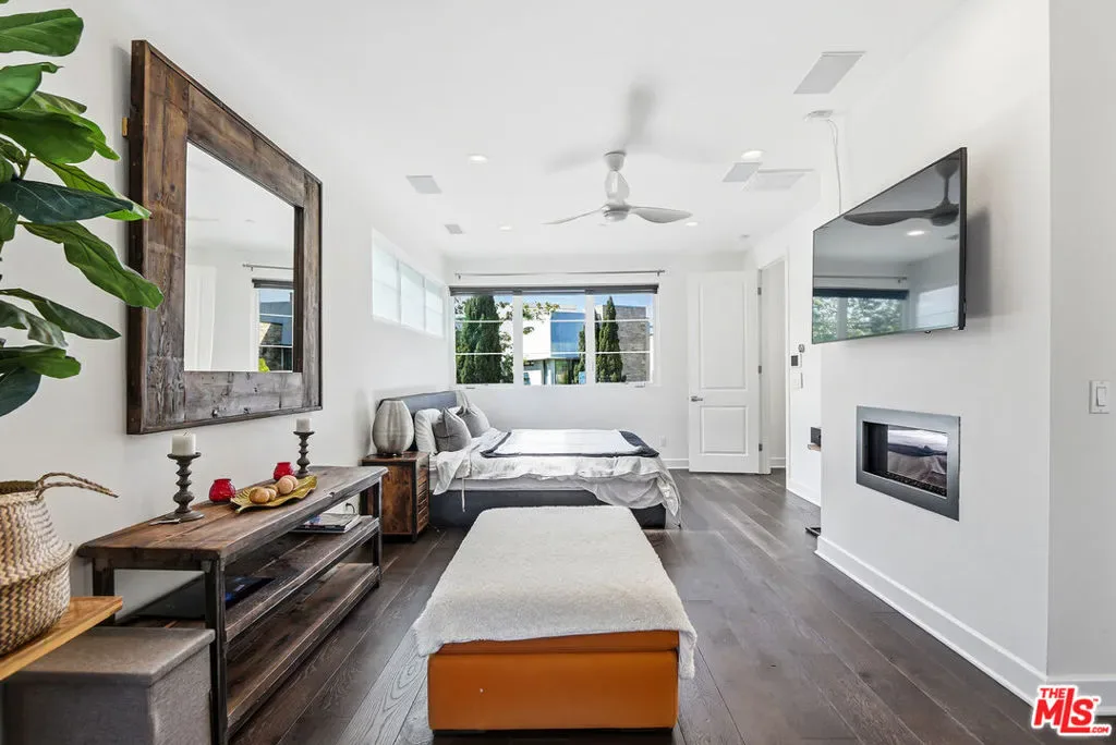 Situated in a premier Playa Vista location, this stunning Woodson home fronts the highly coveted courtyard. The expansive main level is filled with natural light and showcases a modern open floor plan, seamlessly connecting the kitchen, living, and dining areas. The living room features custom built-ins, a fireplace, and a striking brick accent wall, along with a spacious and very private patio complete with high-end folding doors that fully retract to reveal gorgeous bluff and treetop views. The chef’s kitchen is equally impressive, offering brick walls and backsplash, top-of-the-line stainless steel appliances, a large center island, and sleek white cabinetry, perfect for cooking and entertaining. This level also includes a spacious bedroom and a beautifully updated modern bathroom. Ascend to the top floor, where the sophisticated primary suite occupies the entire level. Bathed in natural light, this expansive retreat features a fireplace and reclaimed wood accent walls with exposed shelving and dual built-in desks. The suite also offers a generous walk-in closet and a luxurious spa-like en suite bathroom with dual vanities, a soaking tub, and a glass-enclosed shower. On the first level, the bonus room offers an incredible space for entertaining, highlighted by a reclaimed wood accent wall, a built-in bar, and high-end folding doors that seamlessly open to the spacious front patio, creating effortless indoor outdoor flow. The front patio is finished with travertine pavers and a built-in gas fire pit. Just beyond, a private side yard features lush landscaping, artificial turf, and a relaxing hot tub, creating a true outdoor retreat. Additional highlights include wide plank dark oak hardwood floors throughout, updated modern bathrooms, a wine refrigerator, built-in speakers, electric blinds, Nest thermostat, solar panels, a spacious laundry room with side-by-side washer and dryer, a two-car garage with ample storage, and a bonus guest parking space. Enjoy the best of Playa Vista living just moments from The Resort, The CenterPointe Club, parks, and Runway shopping and dining.