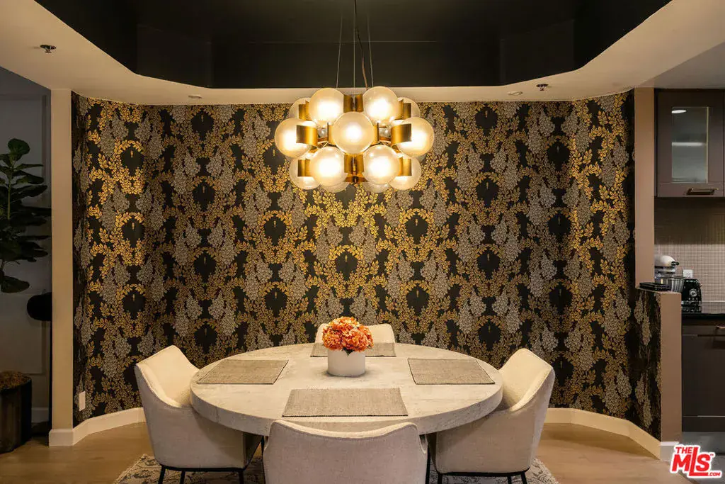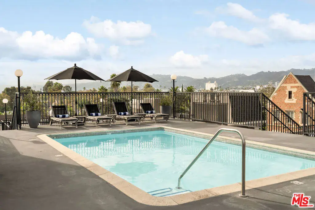 Hancock Park Elegance near Wilshire Country Club & Larchmont Village. Perched on the 4th floor of a meticulously maintained building, this exquisitely remodeled 1-bedroom condo is a study in refined Los Angeles living. Renovations include newly installed wide plank oak floors, bespoke designer wallpaper, Soho Home light fixtures, Farrow & Ball paint, added backlit wood paneling in the bedroom, and elegant wall molding in the living room. Floor-to-ceiling windows flood the space with natural light, while a gas fireplace adds warmth and a touch of cinematic drama. Both the bedroom and living room open to a balcony, creating a seamless indoor-outdoor flow. The bedroom offers a generous walk-in closet, and in-unit laundry ensures effortless day-to-day living. Located within the coveted 3rd Street Elementary district and just three blocks from the vibrant Larchmont Village, the location offers a convenient lifestyle with some of the city’s finest dining, shopping, and culture. The building itself is a model of modern luxury, boasting a rooftop pool and newly renovated outdoor kitchen with panoramic views of the Hollywood Hills, and Griffith Park. Additional amenities include a freshly redesigned lobby, elevators, a state-of-the-art gym, secured keyless entry via facial recognition, 2-car tandem parking with an EV charger, and bicycle storage. Pets are welcome, completing a lifestyle of sophistication and convenience. Welcome home!