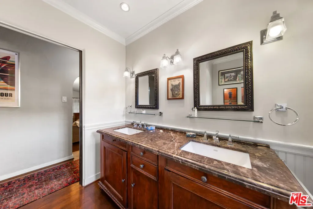 Spanish Cottage with professionally landscaped yard. Available for lease in the prestigious Bronson Canyon neighborhood. Enjoy classic architectural detail elevating the design of the home thorughout. Warm and welcoming living areas with arched doorways, hardwood floors, a pitched ceiling, and a cozy decorative fireplace. The kitchen caters to those who. like to cook. Fully renovated with custom millwork, stone countertops, and new high-efficiency appliances. The primary suite has a dual closet system, french windows looking out to the Hollywood Hills and a spa like bath featuring a custom double marble vanity, mission-style subway tile, and a deep porcelain soaking tub. The home has a second main floor bedroom that can serve as an office or den. And, there is a third bedroom down stairs with an ensuite bath and private entry. California is known for its indoor-outdoor living and this home does not disappoint. A tranquil backyard porch and pergola for morning coffee, complemented by updated landscaping, exterior lighting, and a coveted third parking space. We invite you to do more than just tour the house, come and experience the local lifestyle before you sign. Take a “test drive” of the neighborhood by starting your morning with a latte at the nearby Oaks Gourmet, or fresh juice at Kreation. Exploring the iconic Griffith Park just minutes away, or enjoying a sunset dinner at the trendy shops and restaurants of Franklin Village. Don’t miss this rare opportunity to lease an extraordinary home in one of the most serene yet accessible enclaves of the Hollywood Hills.