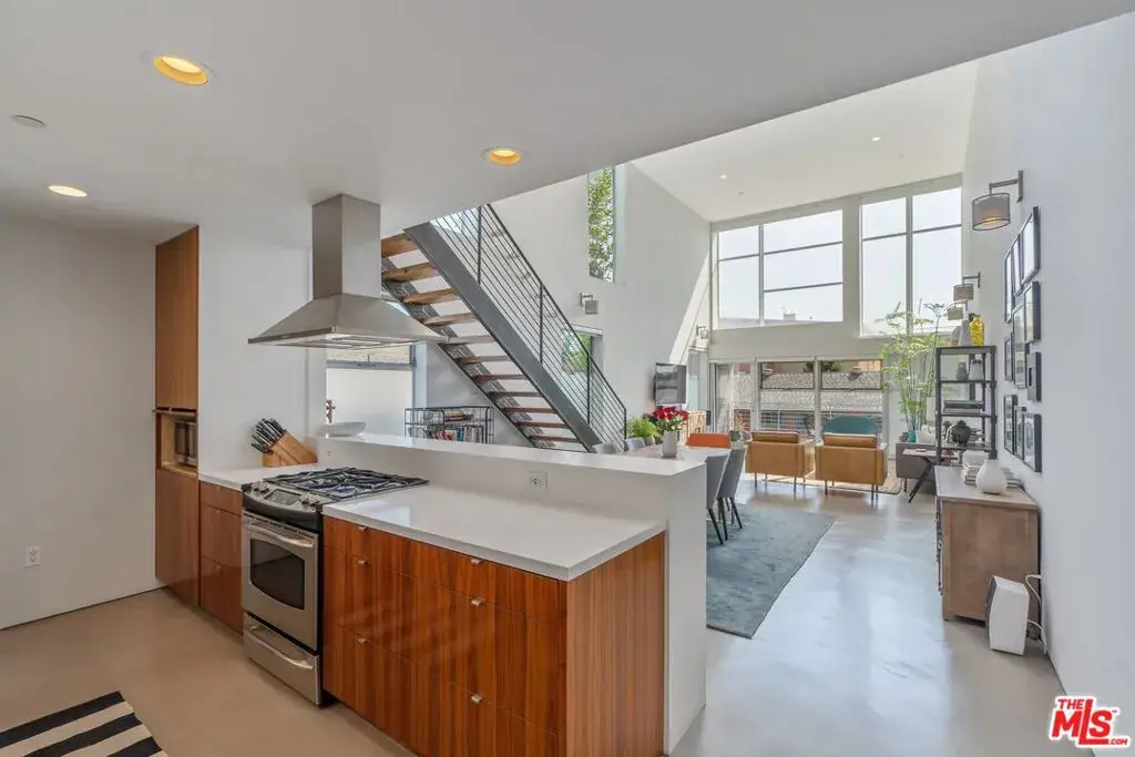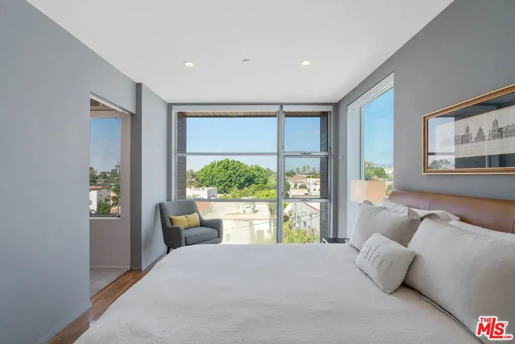 Fully Furnished dynamic 2 story, corner townhouse with views of the Hills and the Hollywood Sign. Intimate 8 unit building designed by AIA award winning architect, Lorcan O’Herlihy and located just a few blocks from wonderful Larchmont Village. The open floor plan with 2 story living room is flooded with natural light from the East, West and North. The gorgeous cooks kitchen features all the appliances and accessories you’ll need to create some special meals. Downstairs is a guest suite featuring a beautiful newer bathroom. Upstairs primary bedroom with a sumptuos bathroom and Hollywood plus neighborhood views as well as a loft/office. Great corner unit with 18+ foot ceilings, private balcony to enjoy your morning coffee, concrete and hardwood floors, custom kitchen and bathrooms with everything you will need for a luxurious stay. Available short term/long term. This is an inspiring creative space in a prime location across from Paramount and Raleigh Studios.