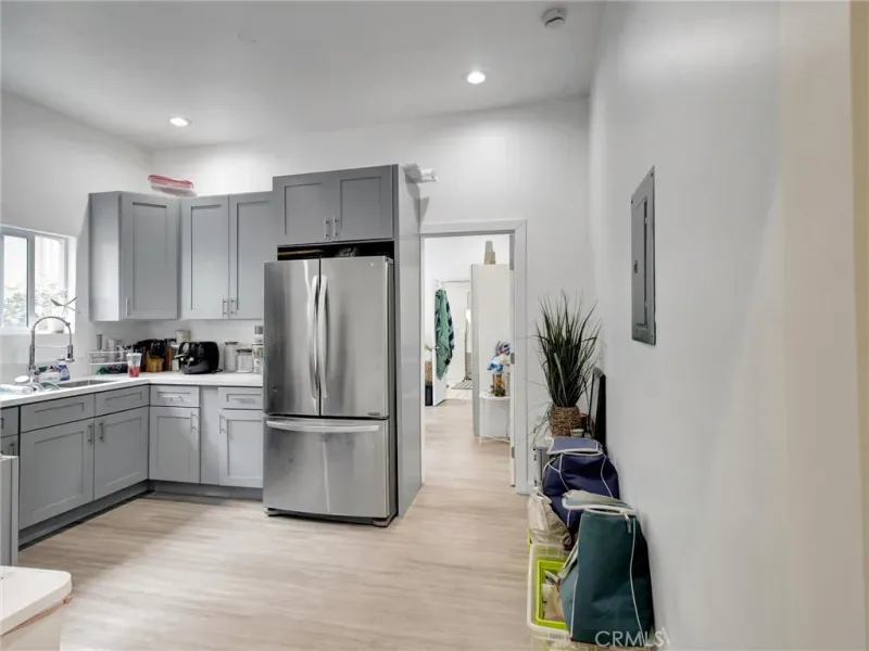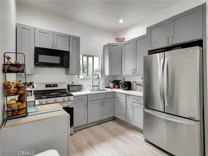 This is a remodeled house into a great duplex recently remodeled and new electrical installed up to code and great for starter family with 1 bedroom rental next door for income or Family next door. other side is 3 bedroom 1 bath great new kitchens The location is zoned LA4 so you can build Adu’s in back up to two ADU’s must check with city to confirm this all construction questions due your due diligence and confirm. Lots of rebuilt 4-6 units near by and options for owner now or in the near future.