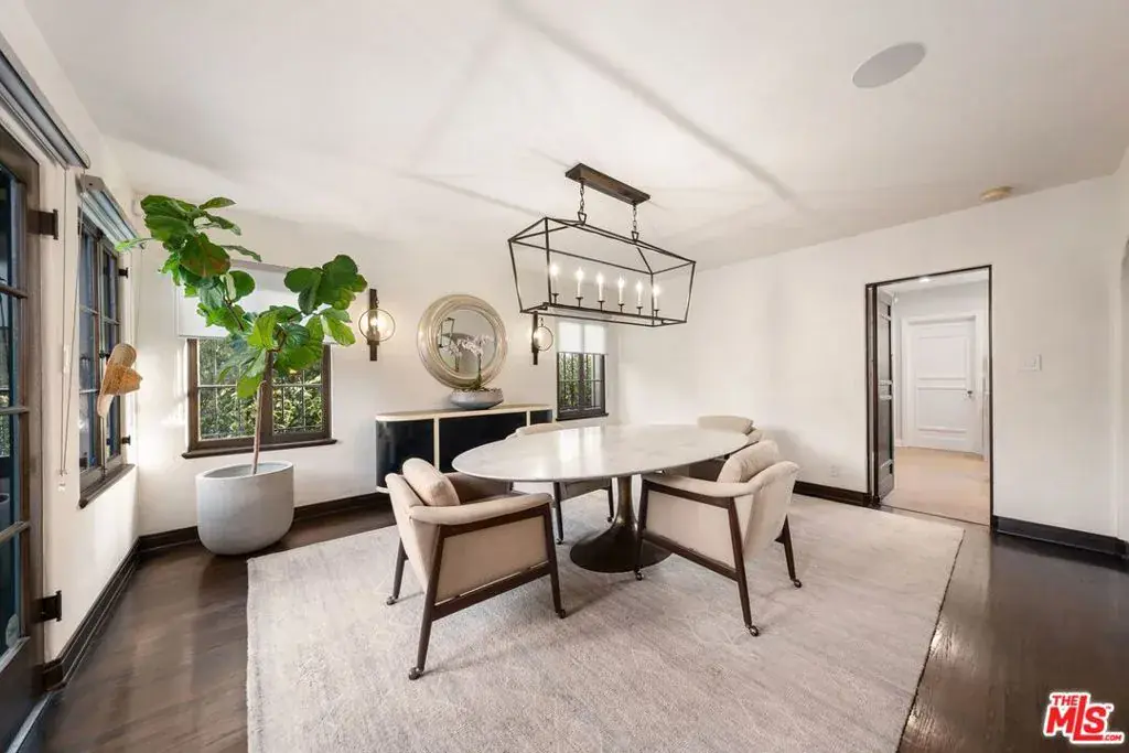 A rare opportunity to own a piece of Los Angeles history, this Spanish Revival residence in Hancock Park was originally designed by noted architect Donald Uhl. Blending timeless 1920s character with modern upgrades, the home has been reimagined to meet today’s lifestyle while honoring its architectural roots. Step through the arched entryway and be greeted by original tile floors and a sweeping wrought-iron staircase, setting the tone for the craftsmanship found throughout. Natural light fills the formal dining room, which opens to a private courtyard featuring an outdoor fireplace and fountain, perfect for intimate gatherings. The gourmet kitchen is equipped with top-tier Miele appliances, including a wine fridge, steam combi oven, and built-in coffee system, making it both functional and stylish. A versatile den or office sits just off the entry, offering flexibility for work or relaxation. Upstairs, three spacious ensuite bedrooms provide comfort and privacy. The primary suite includes access to a private balcony, extending the living space outdoors. The grounds are beautifully landscaped with mature plantings, including camellias, coral trees, palms, and roses, all enhanced by thoughtfully designed exterior lighting. With a full home sound system, Wi-Fi integration, security, and CCTV, this residence seamlessly merges historic charm with the conveniences of contemporary living.