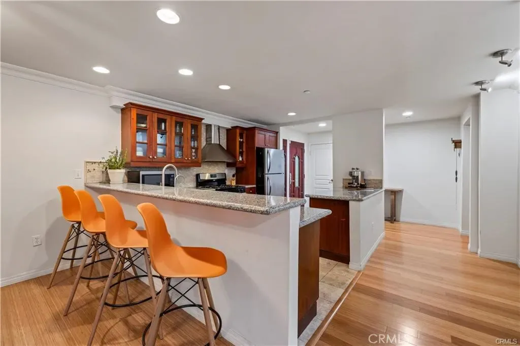 Welcome to the Monterey Villas – This is unquestionably the best location within this building, granting the owners complete privacy from other units. The layout and location provide no adjoining neighbors on either side! The building elevation off the street provides peace and quiet, all while keeping you close to all the action South Pasadena has to offer. Live just minutes from Old Town Pasadena, a short drive to Downtown LA, and moments from some of the best locations in all of Southern California. Your privacy and convenience are also a top priority at the Monterey Villas Complex, offering gated and secure assigned covered private parking with guest parking within the structure as well. Secure keypad-only entry from the parking and into the complex. BONUS – this unit also has a separate private storage room! As you enter the unit, observe the high ceilings, hardwood floors, recessed lighting, remote-controlled fireplaces, and the wide open living space, which brings your kitchen, dining, and living room areas together to enjoy as one. If cooking and gathering are what you enjoy, this kitchen was made for you! The chef will surely appreciate the large pantry closet, stainless steel appliances, brand new dishwasher, and expansive granite countertops. This large kitchen includes a high-top counter, also ideal for entertaining or just enjoying a quaint meal at home. The main bedroom has large closets with plenty of storage space, lots of natural light, and a large en-suite bathroom complete with double vanities, granite counters, a separate shower, and a jetted soaking tub.