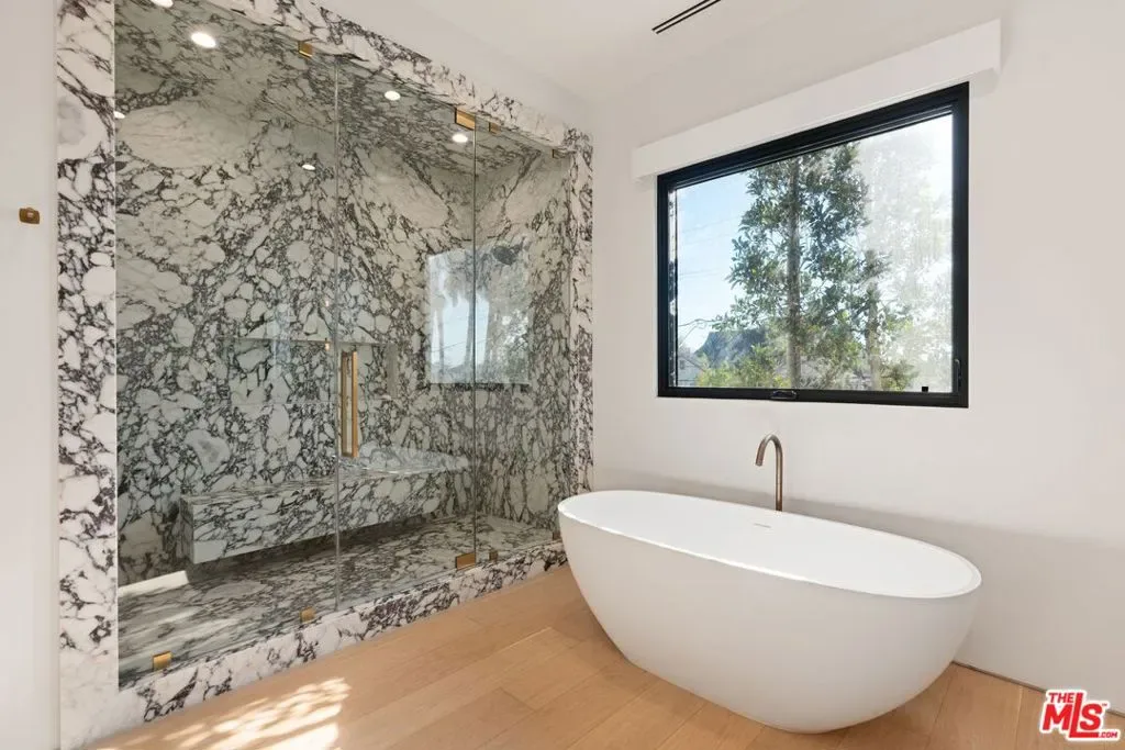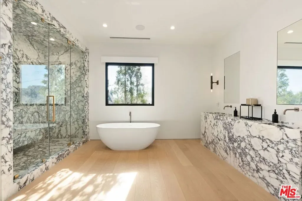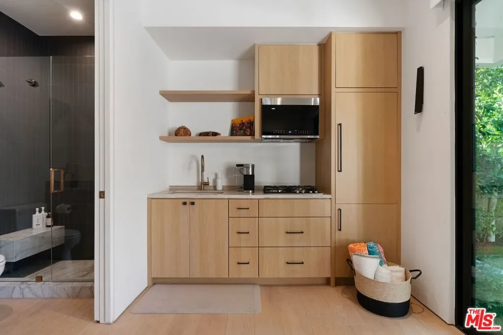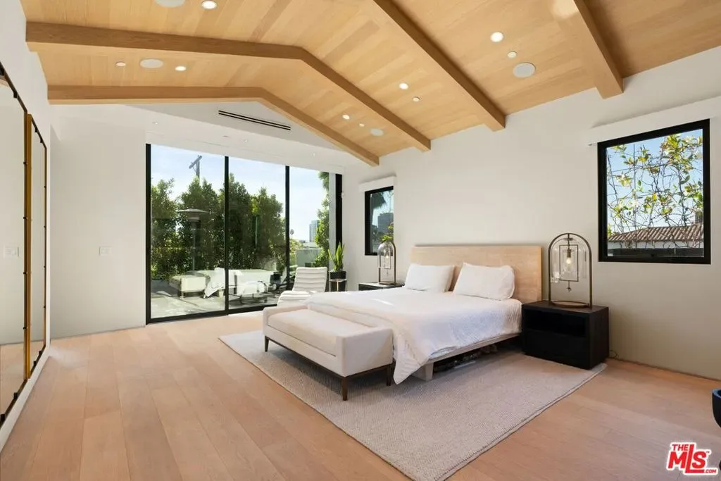 Serene Fully Furnished Modern haven in the heart of Beverly Grove, surrounded by lush greenery on a premier street. This fully furnished home features European white oak floors, designer stone finishes throughout, and expansive Fleetwood sliding doors, blending elegance with functionality. This residence offers a 5-en suite bedroom, 6-bath seamless layout ideal for both entertaining and everyday living. Highlights include: A sophisticated primary suite with vaulted ceilings, a walk-in closet, and a spa-inspired bathroom. Multiple balconies offer serene views and private outdoor escapes. Chef’s kitchen with Sub-Zero Wolf and Meile appliances, bar with wine refrigerator, a walk-in pantry, and sleek finishes. Formal living and dining spaces with statement fireplaces, and a detached ADU, perfect for guests. The private backyard is an entertainer’s dream, complete with a heated pool and spa, outdoor BBQ, and ample space to relax. The home is also equipped with a cutting-edge Control4 smart home system, 4K AI security cameras, and Post Alarm monitoring, this home offers unparalleled comfort, security, and peace of mind. Luxurious living with impeccable furnishings, close in proximity to The Farmers Market, The Grove, Whole Foods, and Trader Joes. Property is also available for Sale, contact Listing Agent for details.