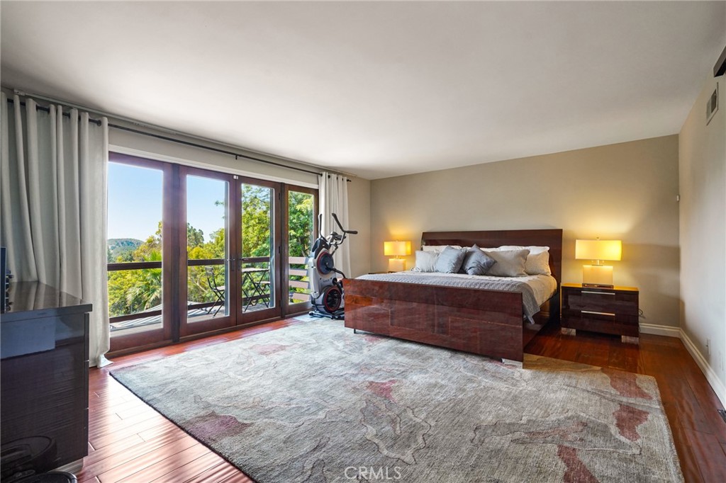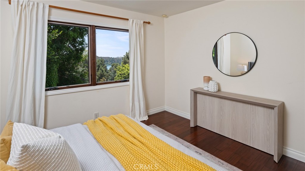 This four-bedroom, three-bathroom residence sits on a rare 13,200+ square foot lot with something uncommon of for a hillside property in this neighborhood: a genuine flat backyard with complete privacy. Wrapped in mature trees and lush hillside landscaping, the outdoor space feels closer to a mountain escape than a home minutes from Hollywood, just the canopy and glimpses of Lake Hollywood through the trees.