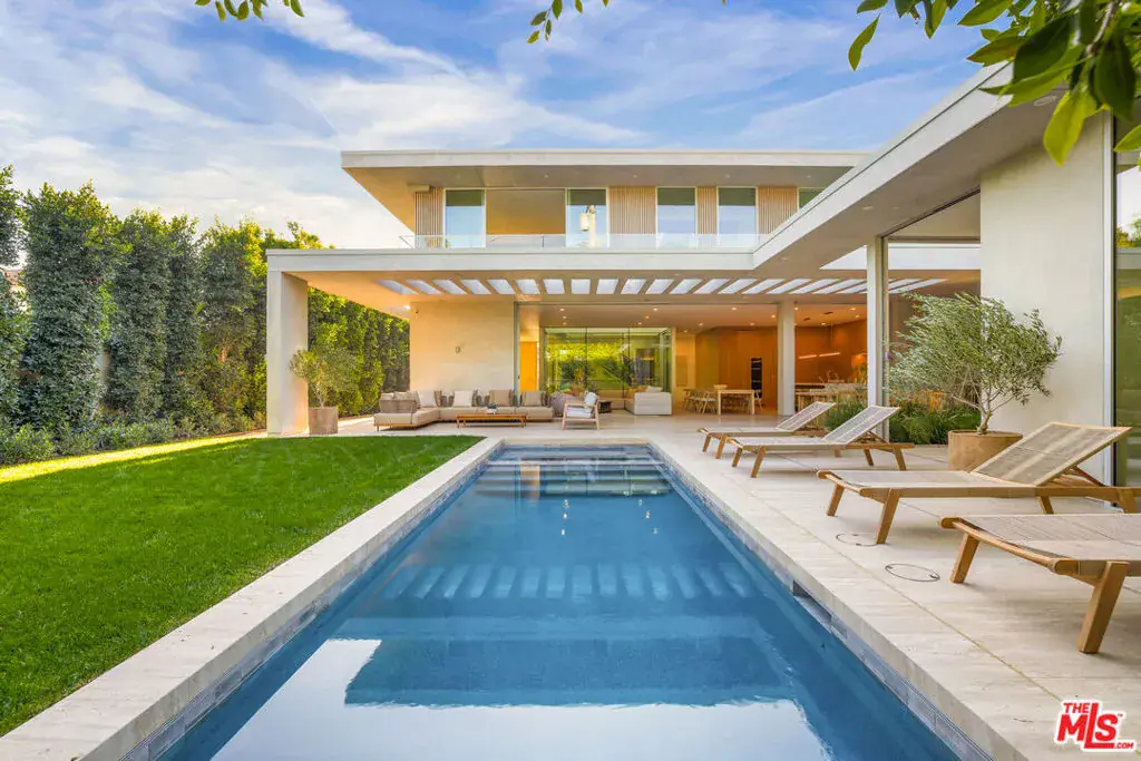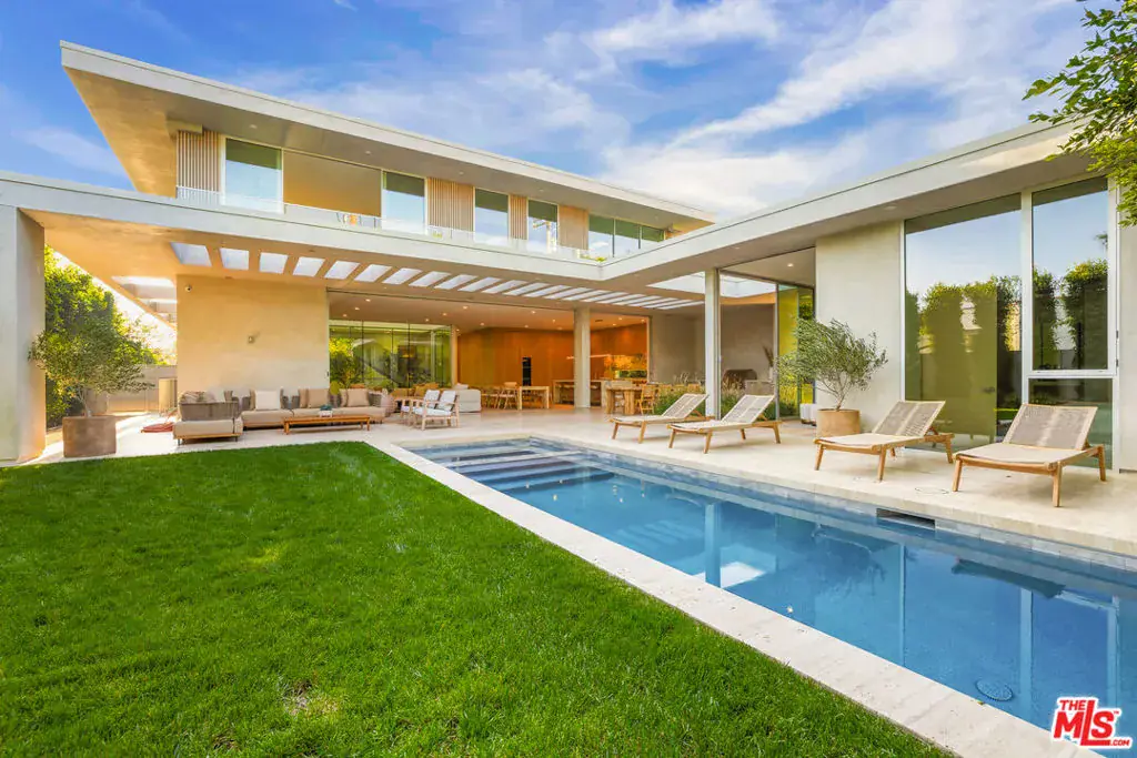 A stunning brand new warm contemporary by Wylan James and Ezequiel Amado Cattaneo Architects. Featuring an incredible blend of design and architecture located on one of Brentwood’s most prime streets. A stunning light filled entry and living room with center courtyard & open floor plan are perfect for large scale entertaining or intimate gatherings. High ceilings, walls of glass and warm light woods throughout create a calming ambience. An Incredible kitchen, family/great room open to the private grassy garden and pool, office, theatre, gym/wellness area, and separate guest house. There is a large primary suite with huge closets and luxurious spa like baths. Incredible materials, craftsmanship and exacting details for the most discerning.