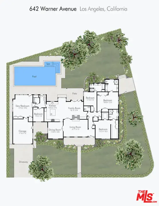 Set behind an iconic white picket fence on an oversized, flat, corner lot in the heart of Little Holmby, 642 Warner Avenue is a storybook, single-story traditional that blends 1940s character with extensive modern updates. Warm, inviting, and impeccably maintained, this home offers a rare combination of timeless appeal and turnkey living. Inside, the floor plan balances classic spaces, such as the formal living and dining rooms, with a recently created modern, open-concept family room and kitchen. Upgrades by the current owner include new wood floors throughout, new roof, refreshed bathrooms, updated plumbing, a revitalized kitchen and updated appliances. There are three guest bedrooms (one currently staged as an office), each with its own full bathroom, plus a second family room overlooking the pool that functions perfectly as a playroom or a spacious fifth bedroom. The primary suite features dual walk-in closets with custom built-ins and a beautifully remodeled bathroom. A laundry room and powder room complete the layout. The exterior is equally impressive. An inviting, vine-covered pergola off the family room leads to the expansive, private grassy yard and the sparkling saltwater pool, secured by a stylish glass safety fence. The result is a home that lives effortlessly; classic in its charm, modern in its comforts, and situated within one of Westwood’s most beloved neighborhoods. Moments from Holmby Park, UCLA, and Warner Avenue Elementary, this is Little Holmby living at its finest.