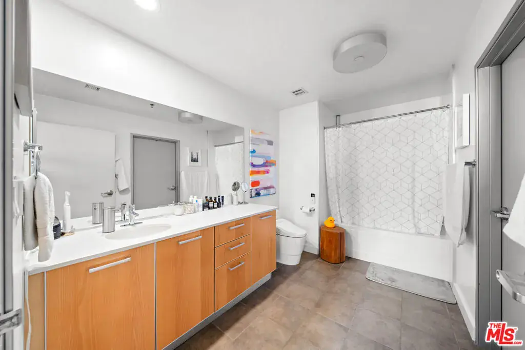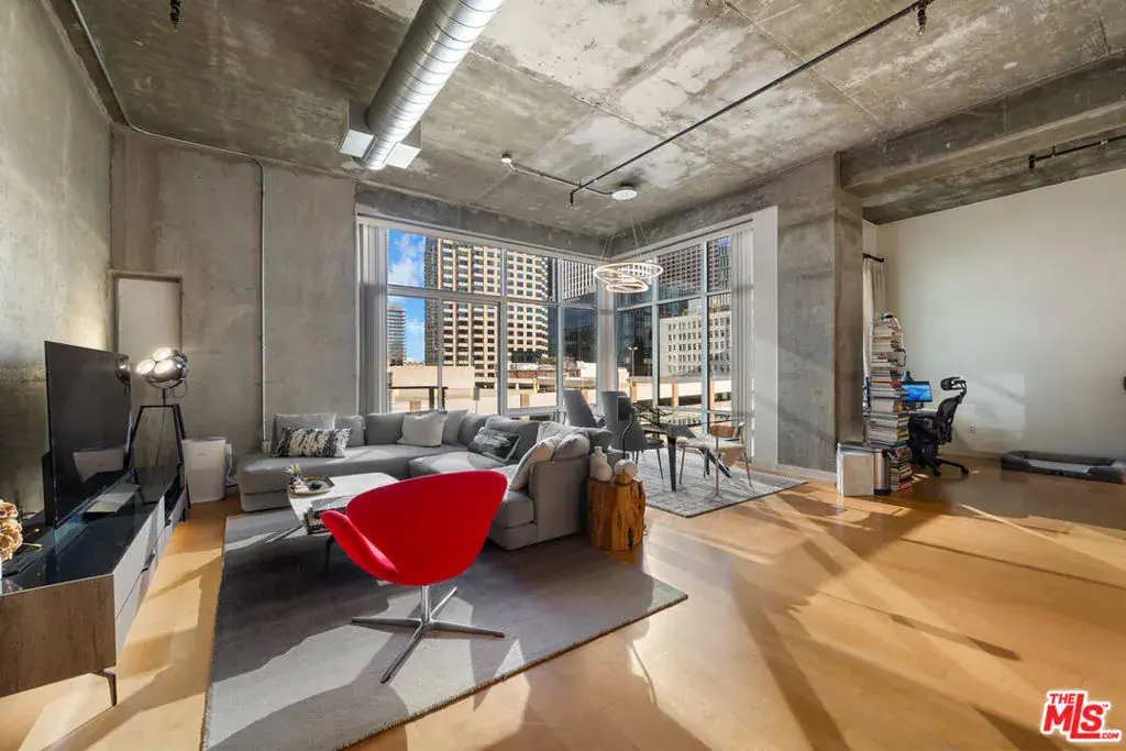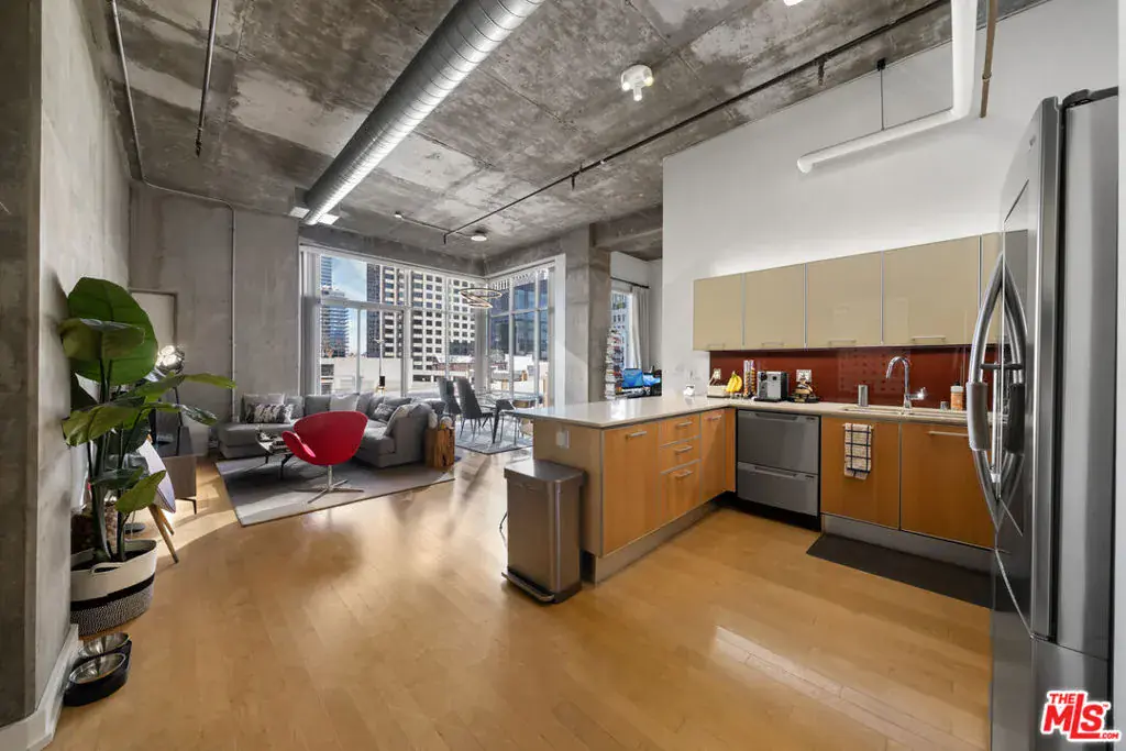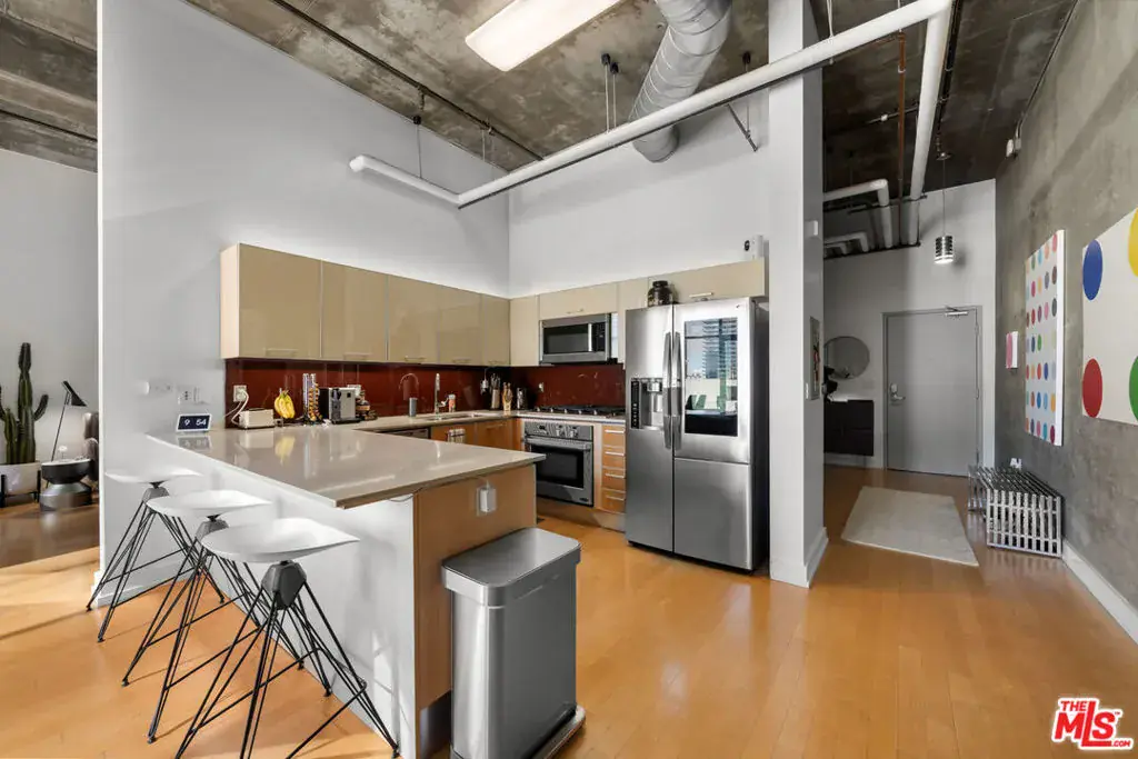 Don’t miss this rare chance to own a highly sought-after top-floor Penthouse loft with soaring 14′ ceilings and abundant natural light. The expansive floor-to-ceiling windows showcase breathtaking panoramic views of the DTLA skyline – Arguably the finest in the building. Step into an impressive entryway featuring a tall, exposed concrete wall, perfect for showcasing your art collection. This space seamlessly flows into a spacious living area and a sleek modern kitchen equipped with top-of-the-line stainless steel appliances, Caesarstone countertops, glass backsplash, and elegant European cabinetry. The bedroom area is generously sized, offering ample space for an office area that also benefits from the stunning city views. Adjacent to the bedroom, you’ll find a luxurious bathroom and an expansive walk-in closet. An additional storage closet at the entryway provides a convenient solution for shoe and coat storage. For your convenience, the unit includes a BOSCH in-unit washer and dryer, along with a dedicated parking space. Located in the vibrant heart of DTLA you’re just two blocks away from four grocery stores, popular restaurants, bars, and trendy shops. Residents enjoy exclusive amenities such as 24-hour security, a swimming pool and spa, a clubhouse, a BBQ area, a movie screening room, a fitness center, and onsite management. *** HOMEADVANTAGE QUALIFIED PROPERTY *** This property offers exclusive access to the HomeAdvantage program. Qualified buyers may achieve SUBSTANTIAL monthly payment savings* Listing agent has program specialist contact details – ask today!* Subject to buyer qualification. Matterport 3D Virtual Tour: https://my.matterport.com/show/?m=ogqu6aUor4e