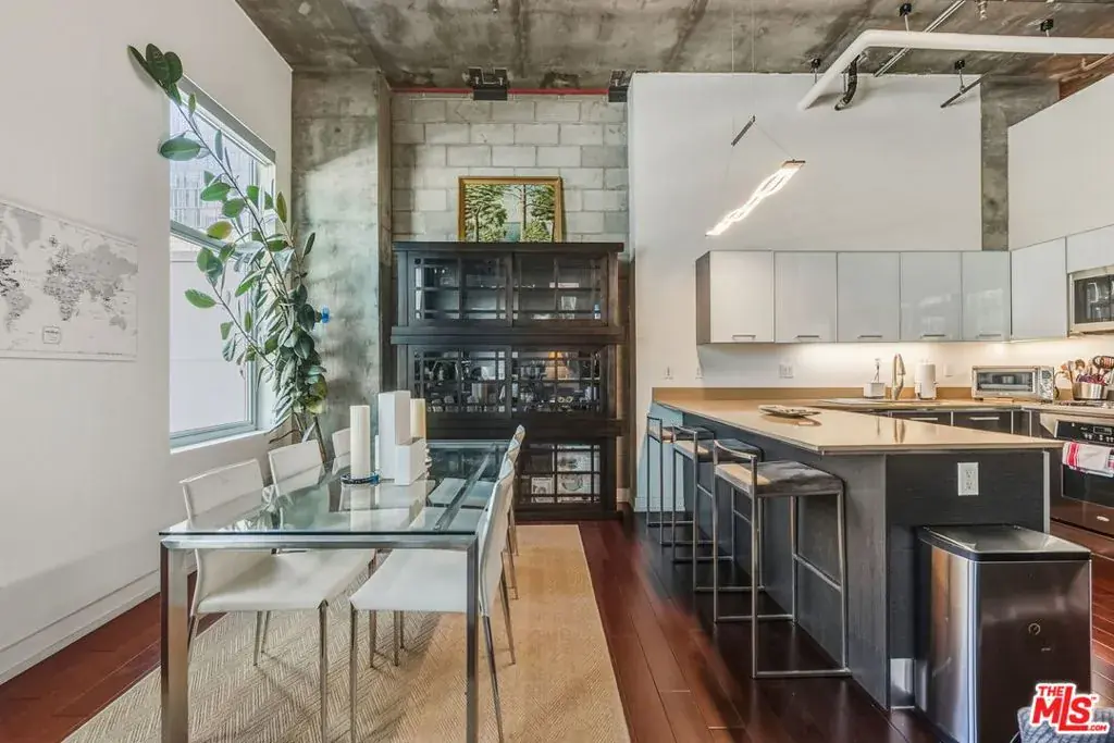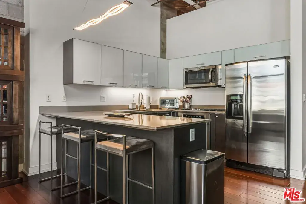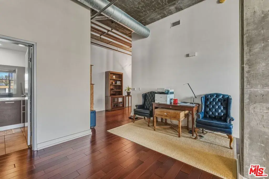 This striking penthouse-level residence features one of the larger two-bedroom floor plans in the building, offering a layout that lives more like a spacious home than a condo. Located on a quiet northwest corner, the unit is filled with natural light and showcases soaring ceilings that enhance the sense of openness and volume. The primary suite opens directly to a massive private outdoor balcony, creating a peaceful retreat perfect for starting your day with coffee or unwinding in the evening. The open-concept interior is anchored by a spacious, functional kitchen with stainless steel appliances and a generous counter bar, ideal for entertaining or casual dining. Both bedrooms are thoughtfully designed with oversized custom-built walk-in closets, while the gallery-style entry creates a refined arrival experience and a natural transition into the expansive living area – perfect for showcasing art or design pieces. Market Lofts offers full-service amenities including 24/7 front desk and security, on-site management, a second-level pool and spa, resident rec room with kitchen, pool table and comfortable seating, a fully equipped gym, and a screening room. Located in the heart of DTLA, you’re just steps from Ralphs, Whole Foods, The Bloc, FIGat7th, FIDM Park, the Metro Station, USC, Philz Coffee, and more, with easy access to major freeways, L.A. Live, and Crypto.com Arena. Urban living at its finest – park the car and walk to everything.