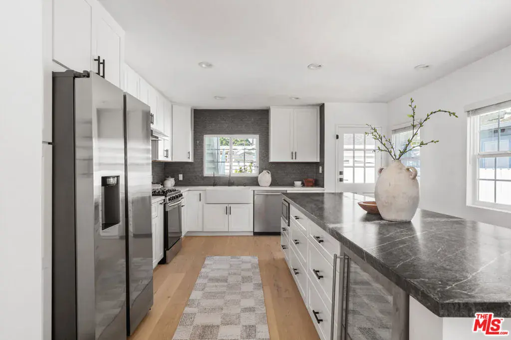 Welcome to this exceptional 5 bedroom 4 bath two-story family home nestled in the highly desirable Kentwood pocket of Westchester. Beautifully landscaped and set on an expansive 6,000+ square-foot lot, this property offers a rare, oversized backyard made even more impressive by the efficient footprint of a two-story design. Step inside to soaring ceilings and an abundance of natural light that immediately create a bright, welcoming atmosphere. The front family room flows seamlessly into a stunning chef’s kitchen, highlighted by a massive island perfect for everyday dining, entertaining, and gathering. The main level features a private primary suite with an en-suite bathroom, walk-in closet, and large double vanity, along with two additional guest bedrooms that share a well-appointed hallway bathroom. Upstairs, a thoughtfully designed loft provides a flexible retreat ideal for lounging, a home office, playroom, or space for older kids while two spacious en-suite bedrooms complete a layout that mirrors new construction. A two-car garage offers ample storage or secure parking, and just beyond it sits a fantastic bonus space with an attached bathroom, perfect for a home office, gym, workshop, or pool house. The expansive backyard is an entertainer’s dream, with room to add a pool, swing set, or outdoor living areas, all while still leaving plenty of space for kids to play. Enjoy your morning coffee or evening cocktail on the patio off the primary suite as you soak in sunny California days. Westchester is one of the most community-driven neighborhoods in Los Angeles, with many local schools located right within the neighborhood. You’ll be friends with your neighbors in no time as residents are always out walking, gathering, and enjoying everything the area has to offer from Fourth of July block parties and a phenomenal Halloween to an unmatched holiday spirit. Zoned for the highly coveted Kentwood Elementary School, this is a home and lifestyle that truly shouldn’t be missed.RTI plans for a brand-new ADU are available upon request.