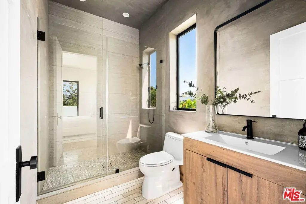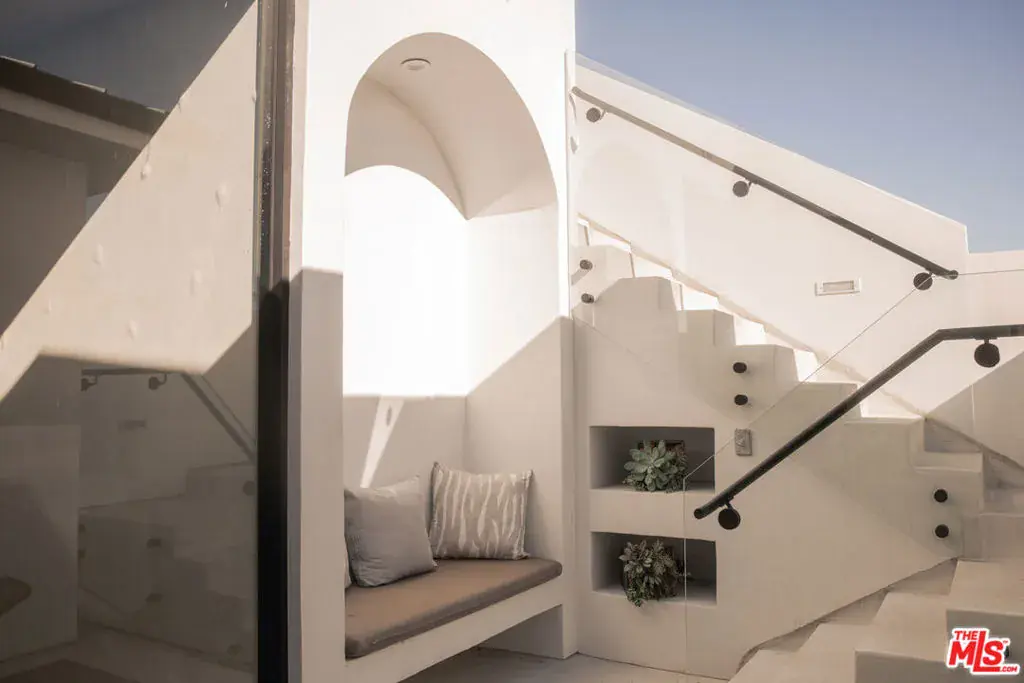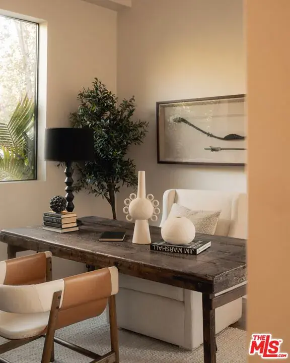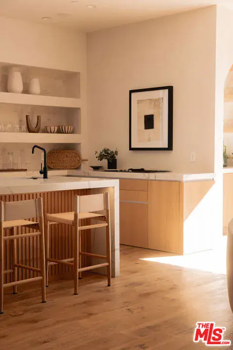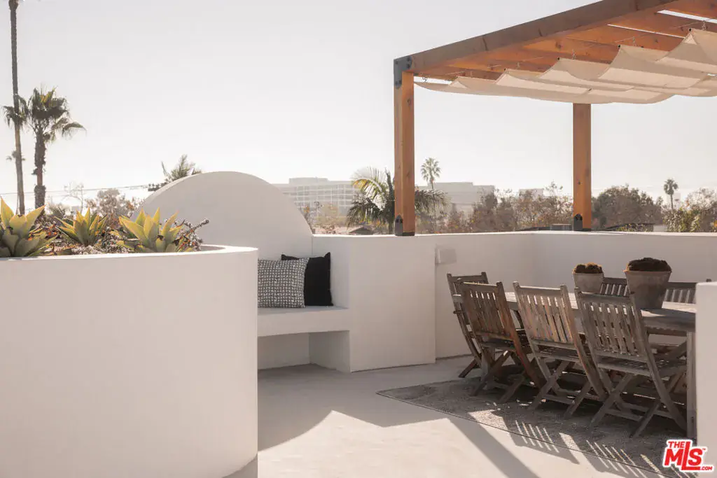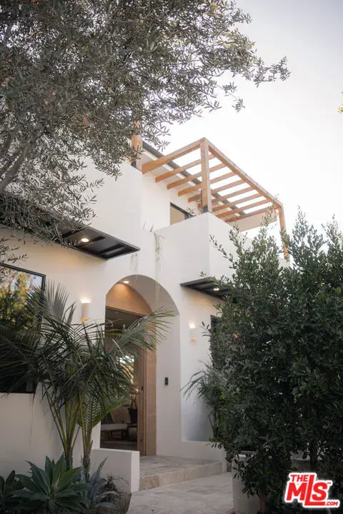 Discover a meticulously reimagined sanctuary where Tulum inspired elegance meets relaxed sophistication. Situated in the heart of Beverly Grove, this gated architectural masterpiece seamlessly blends modern design with effortless luxury. Spanning over 5,000 SF of indoor-outdoor living, the home features a gourmet kitchen with Miele and Leicht appliances, an oversized island, and pocket sliding doors that connect bright interiors to lush outdoor spaces.Featuring four spacious bedrooms and six luxurious bathrooms, this home includes a stunning primary suite with a cozy fireplace, a large private balcony, custom walk-in closets, and a sleek spa-inspired bathroom with a freestanding soaking tub. The second floor offers a charming outdoor terrace, leading to a rooftop deck complete with a built-in wet bar and breathtaking 360-degree views. Enhanced by a state-of-the-art Control4 home automation system, this residence effortlessly combines comfort and modern sophistication.