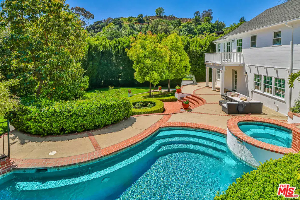 Set on one of Brentwood’s most coveted streets, this timeless traditional residence sits on an expansive 1/2 Acre Lot, offering exceptional privacy and abundant natural light. Mature landscaping and tall hedges create a secluded setting with classic architectural presence.The main living level is designed for easy flow and entertaining, featuring the living room, formal dining room, and a gourmet kitchen equipped with a professional Viking range. Together, these spaces create a cohesive, inviting environment ideal for both everyday living and gatherings.One level below, the private bedroom wing includes four bedrooms, highlighted by a serene primary suite with its own terrace overlooking the grounds. A second lower level offers a spacious family room with fireplace and wet bar, along with an additional bedroom or office, opening directly to the outdoor entertaining areas.The grounds deliver a true resort-style experience with pool and spa, multiple patios, and an outdoor kitchen, all framed by lush greenery that ensures exceptional seclusion. Dual access from North Bundy Drive and North Saltair Avenue, a detached three-car garage, and ample additional parking add convenience and flexibility.