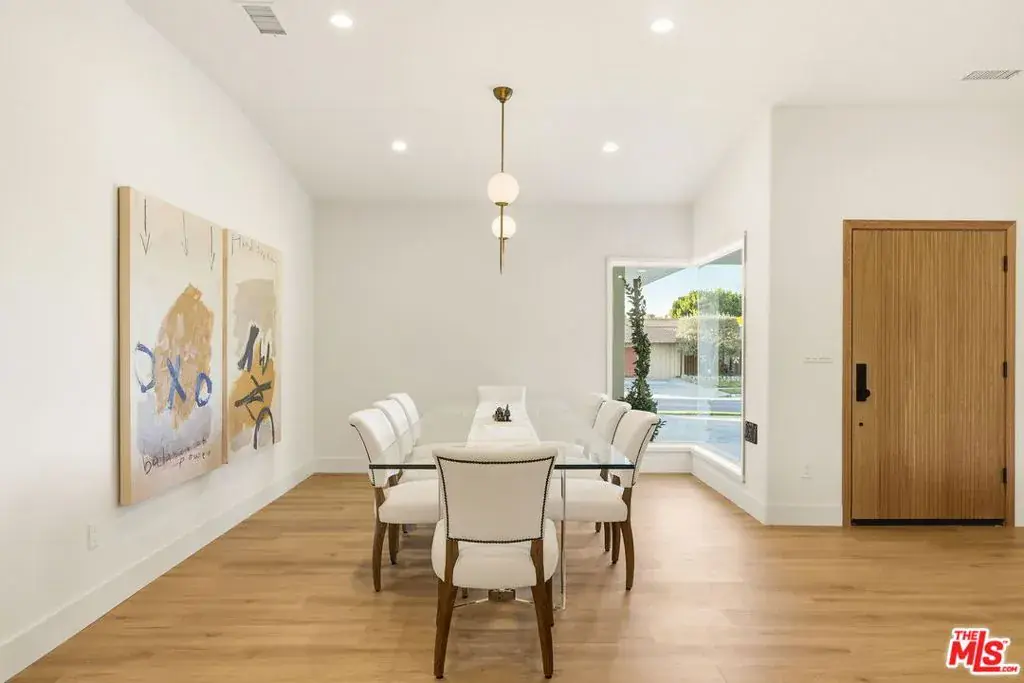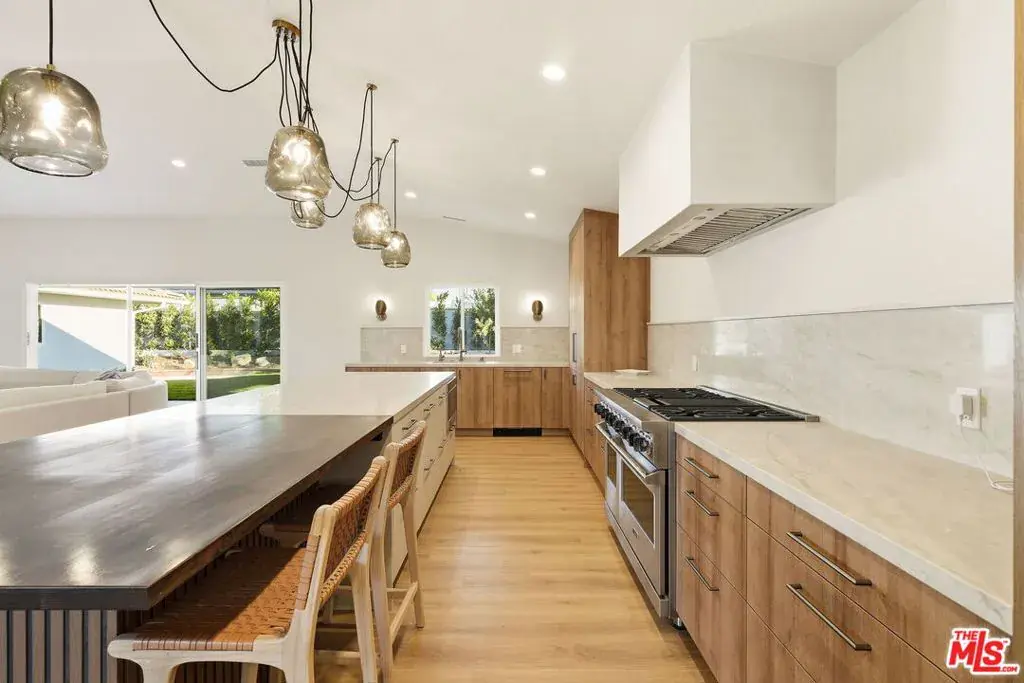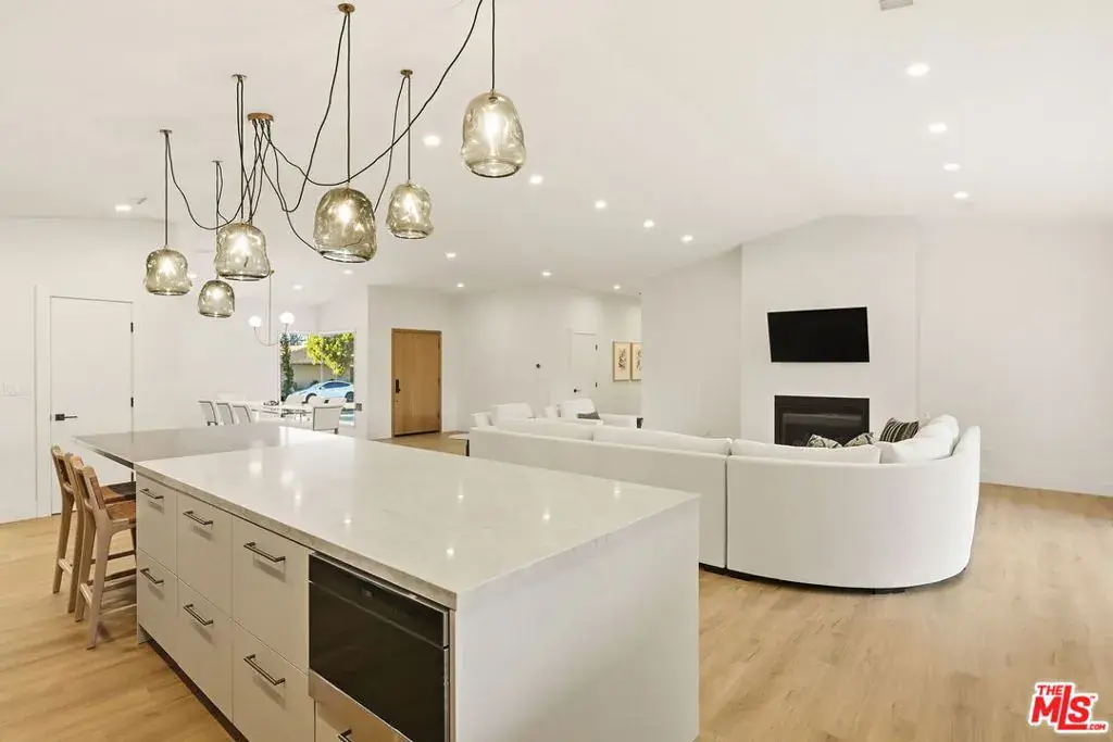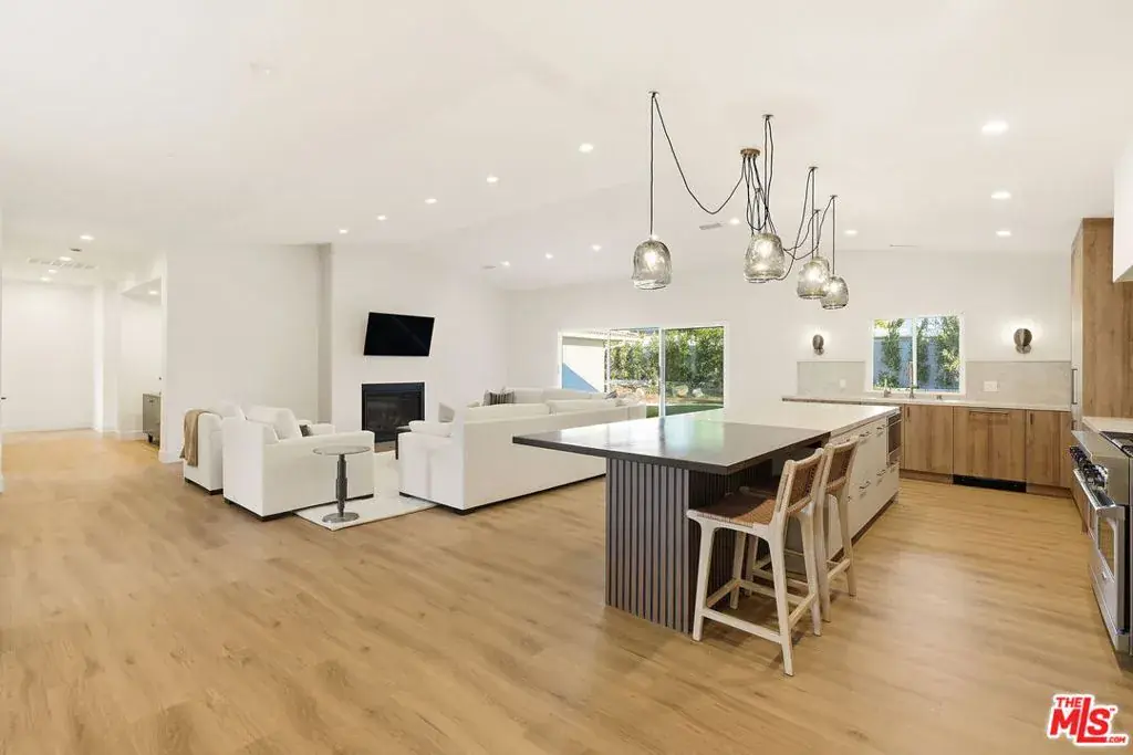 Nestled in the highly sought-after Ladera Heights neighborhood, this desirable Mid Century home has been beautifully remodeled to offer a perfect blend of modern elegance and functional living. The inviting open floor plan seamlessly integrates the living room and kitchen, with the living room featuring a cozy fireplace and sliding doors that lead to a grassy backyard, complete with a patio ideal for outdoor gatherings. The striking modern kitchen boasts elegant stone counter tops and a stylish back splash, along with a center island that includes an extension table, perfect for casual dining. High-end Viking appliances including a refrigerator, stove, microwave, and built-in dishwasher are complemented by custom cabinetry and a stunning chandelier that enhances the space’s sophistication. The dining room, adorned with expansive windows, fills with natural light, creating an uplifting ambiance for meals. The primary bedroom en suite offers a luxurious retreat with a generous walk-in closet. This meticulously updated home also features brand new windows, doors, electrical systems, and plumbing, alongside beautifully renovated bathrooms and new engineered wood flooring throughout. Additional conveniences include a Nest thermostat that controls two-zoned HVAC systems, recessed lighting, and contemporary fixtures. With its prime location near shopping trader Joe’s, Sprouts and Amazon Fresh…. Entertainment, and just a short 10-minute drive to the beaches and LAX, this home exemplifies the ultimate in contemporary style and practical living.