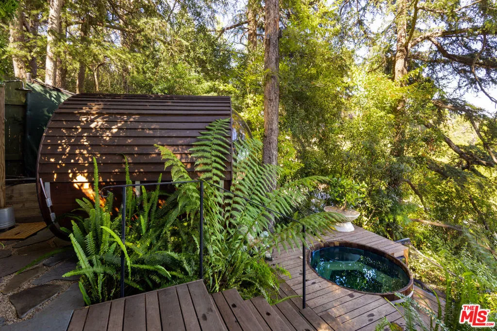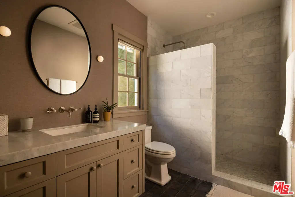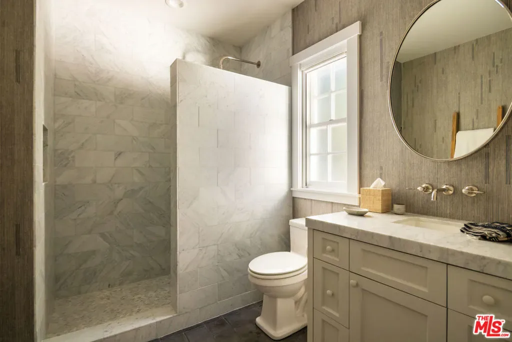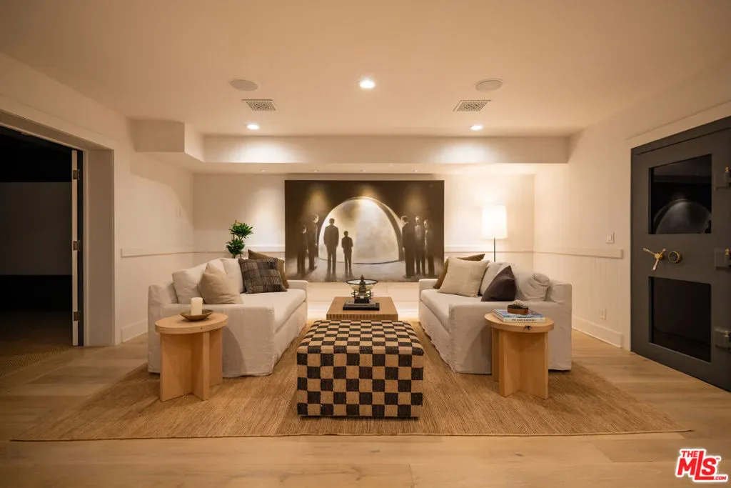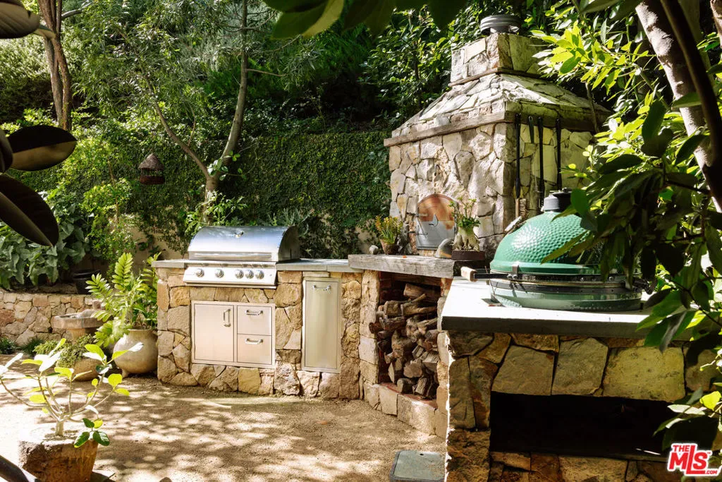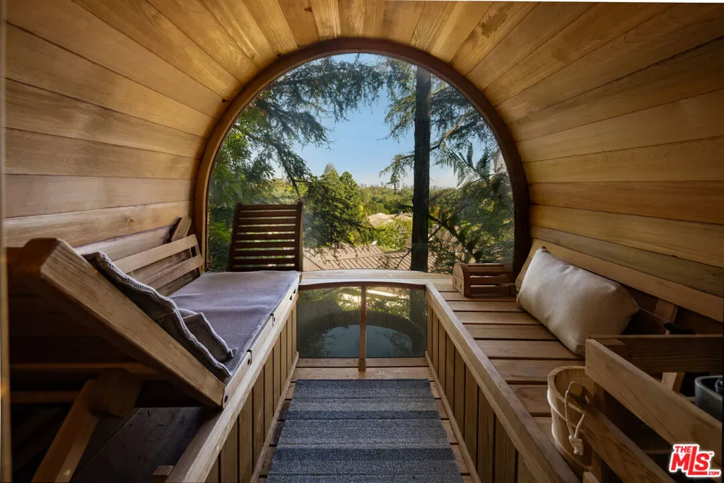 Tucked behind private gates and enveloped by lush, mature landscaping, this turn-key traditional farmhouse rests on a coveted street-to-street lot from Elkins to Oakmont, embodying timeless style and enduring Brentwood elegance. Beyond a meandering, tree-lined drive, the home opens to an inviting front patio that sets the tone for the refined interiors within. A sunlit foyer leads to the family room, where French doors invite indoor-outdoor living and bespoke furnishings by acclaimed designer Rachael Goddard define a sophisticated yet effortless aesthetic. The chef’s kitchen, anchored by a grand island and professional-grade appliances, includes a bright breakfast nook and expansive butler’s pantry. The dining room, perfect for intimate dinners or grand soires, seamlessly extends to the formal living room and serene outdoor setting. Upstairs, the primary suite is a private sanctuary with a sitting room, fireplace, and balcony, complemented by his-and-hers baths and generous custom closets. Four additional en-suite bedrooms, each with walk-in closets, provide comfort and privacy for family and guests. The lower level is an entertainer’s paradise, featuring direct garage access, a mudroom, open entertaining space, a second kitchen, powder room, home theater, expansive wine storage, and a private bedroom with exterior entrance and steam shower. The grounds reveal a luxurious outdoor retreat for elevated entertaining and utmost relaxation, with a fully equipped kitchen and pizza oven, alfresco dining terraces, a tranquil wood-paneled hot tub, and a new sauna framing cinematic city vistas. Additional amenities include an elevator, whole-home water filtration, a Control4 smart system, a dedicated laundry room, and a stately home office, thoughtfully designed to elevate modern living with ease, style, and sophistication. Private yet perfectly connected, this Brentwood residence is moments from the Brentwood Country Mart, premier country clubs, celebrated dining, and top schools, epitomizing the pinnacle of Westside living. 664 Elkins Rd offers unparalleled privacy, timeless design, and a lifestyle tailored to the most discerning admirers. Truly a property not to be missed.