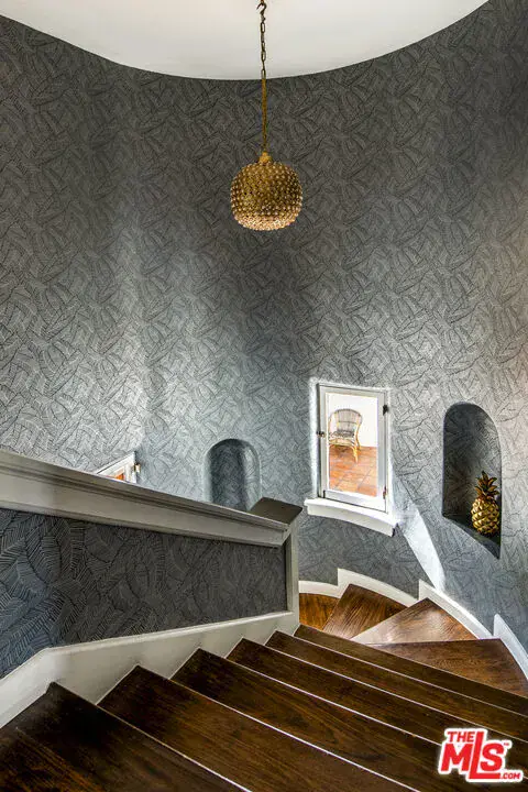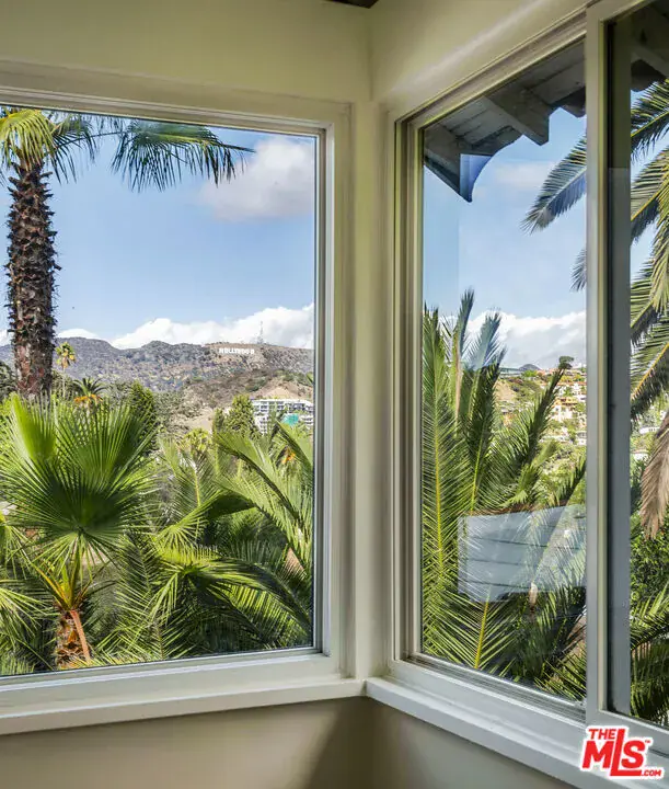 As seen in the New York Times, and sited atop the historic enclave of Whitley Heights, this reimagined 1920s Spanish residence blends preserved character with thoughtful modern updates. Privately gated and set down a long driveway on an expansive 14,000-square-foot flag lot, the property offers exceptional privacy and scale rarely found in the Hollywood Hills. Beyond its classic facade, arched windows and warm wood floors set a timeless tone throughout. The living room, anchored by a wood-burning fireplace, opens to a dining area and a spacious terrace that offers views of the Hollywood Sign and glimpses of the surrounding city lights. The kitchen features a center island, custom cabinetry, marble countertops, and stainless-steel appliances. Upstairs, a rotunda stairwell leads to three bedrooms, including a serene primary suite with a walk-in closet and a spa-like bath with a soaking tub and hillside outlooks. A flexible bonus room offers options for a gym, screening room, or office. Outdoors, multiple patios with classic Spanish tile provide space for quiet relaxation or al fresco dining under the stars, surrounded by swaying palms and complete privacy. Additional features include a two-car garage, ample storage, electric car charger, fully upgraded HVAC, and filtered water system. All of this is just minutes from Franklin Village, the Hollywood Bowl, and Runyon Canyon.