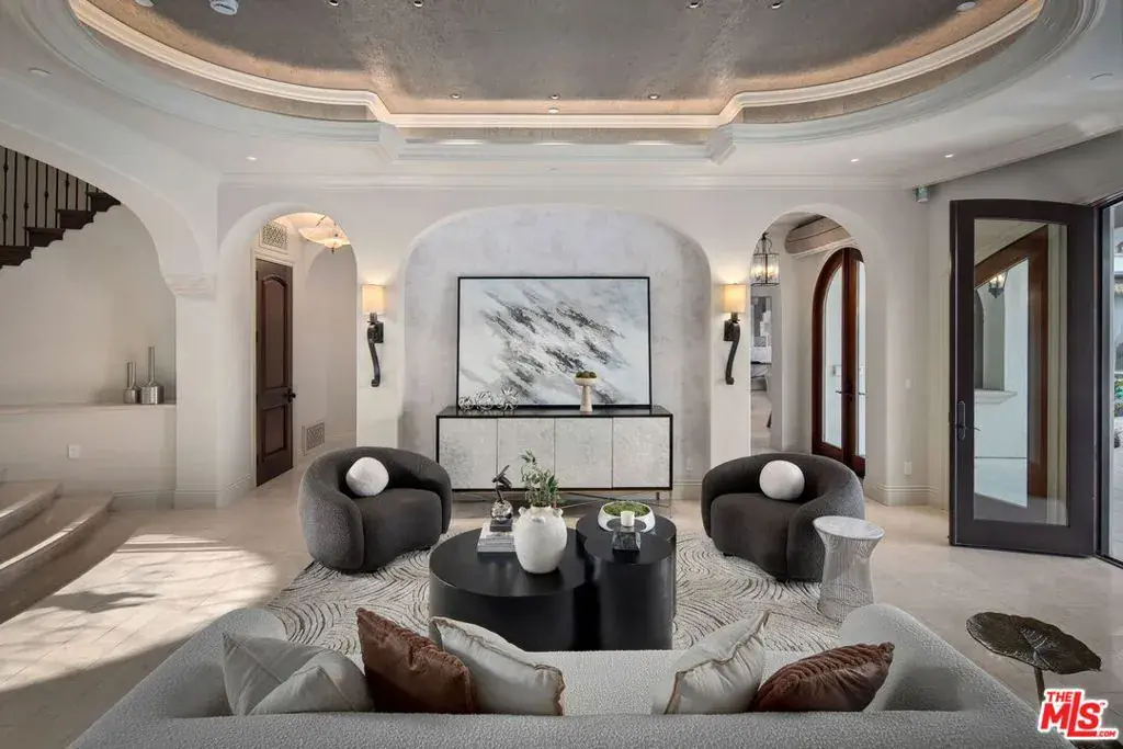 Nestled on a coveted 16,008 sq. ft. lot in one of North Kentwood’s most desirable neighborhoods, this extraordinary Mediterranean estate blends timeless elegance with modern luxury. Offering 8,733 sq. ft. of meticulously crafted living space and a 1,166 sq. ft casita, this private retreat showcases unparalleled craftsmanship and high-end finishes, including Italian marble, limestone, and natural woods, in a thoughtfully designed layout that exudes sophistication and warmth. The main residence features five bedrooms, seven bathrooms, and two half baths, complemented by a two-bedroom, one-bath guest house an ideal haven for multi-generational living or stylish guest accommodations. Both homes are fully equipped smart homes, powered by advanced Crestron technology, allowing seamless control of lighting, climate, security, and entertainment systems. Constructed with flame-retardant lumber, a robust water-softening and filtration system, solar panels, and a hard-wired security system with geo-fencing, the estate offers state-of-the-art innovation with enduring quality. Enter through the grand foyer, where soaring ceilings and a sweeping curved double staircase immediately set a tone of opulence. The open yet well-defined floor plan flows effortlessly between formal and informal living spaces. A stately formal living room with a gas fireplace and mahogany doors opens to the lush backyard, while the sophisticated formal dining room offers a perfect setting for elegant gatherings. The family room, featuring a striking coffered ceiling, pocket doors, and an outdoor fireplace, invites relaxation and seamlessly merges indoor and outdoor living. The heart of the home is an expansive kitchen equipped with high-end appliances, a La Cornue stove, a spacious marble island, and a separate chef’s kitchen for effortless entertaining. A full-service wet bar enhances the home’s hosting capabilities. The main level also includes a private office with coffered ceilings and French doors opening to the front loggia and garden, a hand-carved limestone staircase spiraling around a three-story touret with niche lighting, an adjacent powder room, and an elevator for added convenience. Designed for both grand entertaining and serene retreats, the backyard is a true sanctuary, featuring a large salt-water pool and spa, two outdoor fireplaces, and a tranquil fountain surrounded by lush, mature landscaping that offers exceptional privacy. Upstairs, the primary suite is a luxurious escape, complete with a private balcony offering sweeping views, a cozy fireplace, a spa-inspired ensuite bath with heated floors, a soaking tub, a separate shower, dual vanities, and a refrigerated bar area. Expansive dual closets provide impeccable storage. Four additional en-suite bedrooms ensure comfort and privacy for family and guests, while a conveniently located laundry room adds everyday ease. A first-floor en-suite bedroom, with a refrigerated minibar and French doors to the garden, offers flexibility and accessibility. Entertainment and lifestyle amenities abound, including a temperature-controlled wine cellar for collectors, a private state-of-the-art movie theater with custom seating, an adjacent full-service wet bar and snack center with microwave and refrigerated drawers, a full salon with hair and nail stations, a dedicated gift wrapping, hobby, and homework center, plus a large gym for wellness enthusiasts. The separate guest house offers fully independent living with a custom kitchen, washer/dryer, two large bedrooms, a full bath, and a separate outdoor pool bath, ensuring extended family or guests enjoy complete comfort and privacy. A four-car garage and a gated driveway provide secure parking for six or more vehicles, adding everyday practicality to the estate’s grand presence. This rare offering presents a unique opportunity to own an estate that flawlessly blends luxury, functionality, and exquisite design all within the vibrant heart of Westchester.