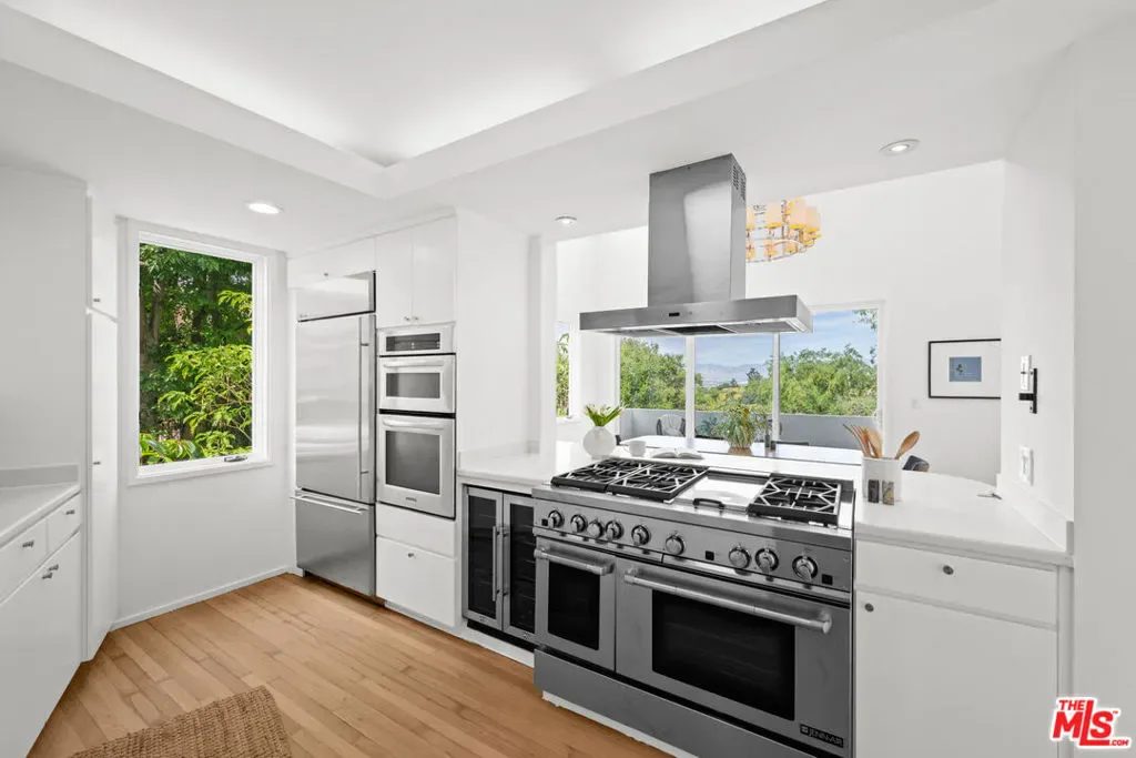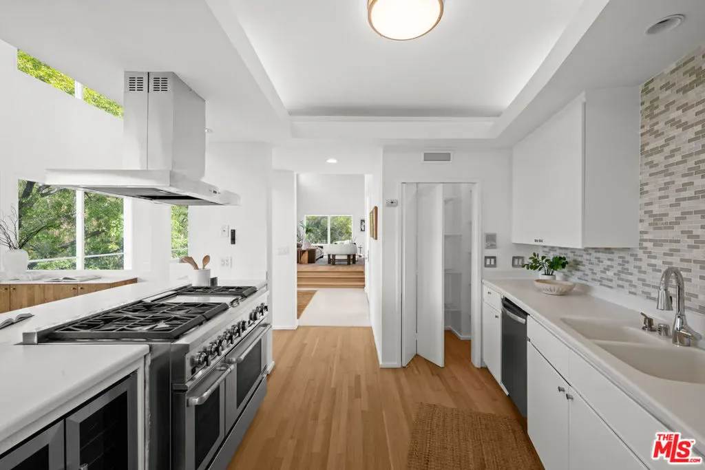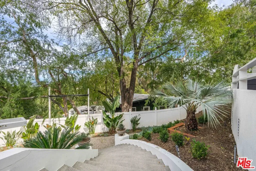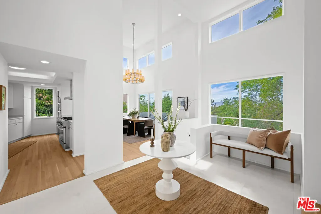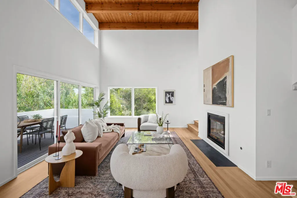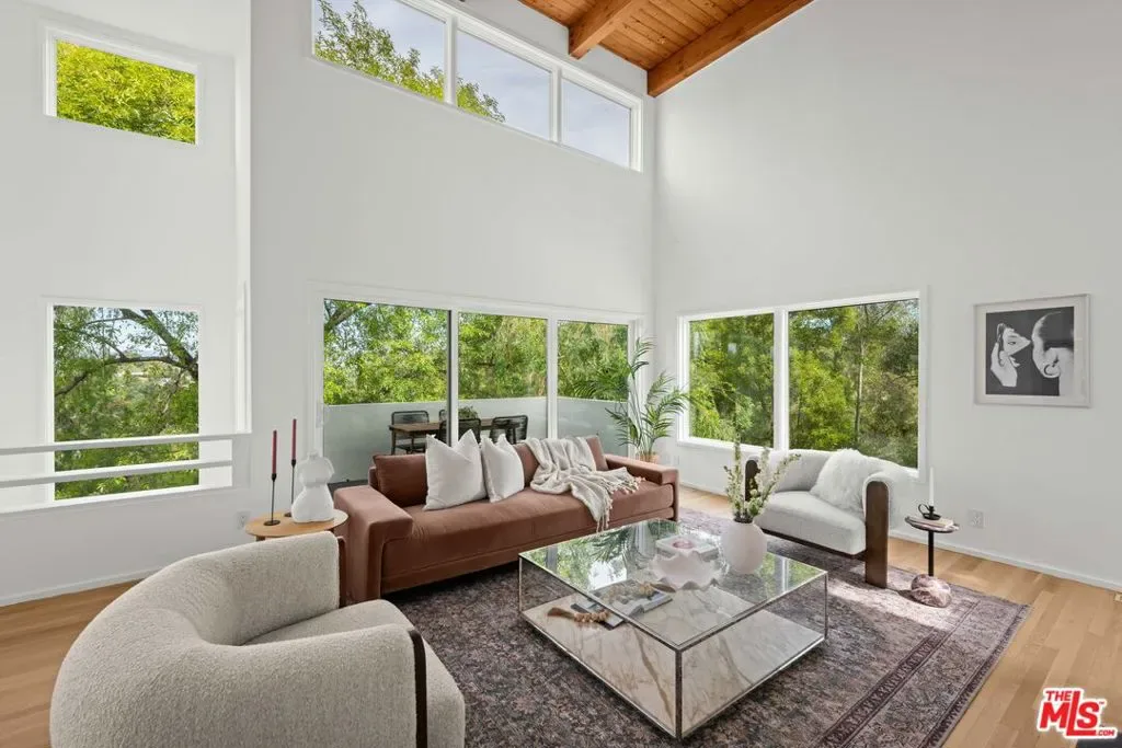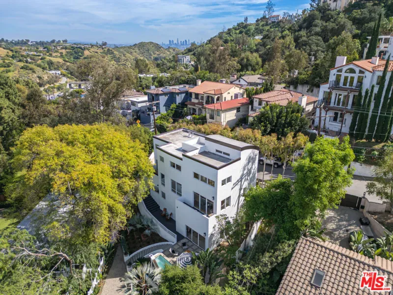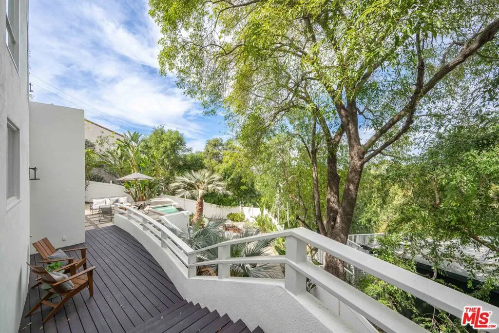 Perfectly positioned in the Hollywood Hills, this residence offers an exceptional opportunity for those seeking both inspiration and convenience. Nestled among lush greenery, this architectural home, built in 1990, represents a classic transitional modern hillside design. Enter through double doors to a dramatic double-height entry, where abundant natural light and serene green views create an immediate sense of openness and calm. The expansive central hall seamlessly connects the living room with its private wood deck to the dining area and kitchen, creating a natural flow ideal for both everyday living and entertainment. The spacious kitchen features a Jenn-Air cooktop, stainless steel appliances, and a large pantry. Thoughtfully designed with an open-concept layout, an early expression of today’s modern living, this home emphasizes volume, light, and connection between spaces. The upper level offers a versatile room with an en-suite bathroom, ideal as a home office, guest room, or third bedroom. On the lower level, the primary suite includes a generous walk-in closet and a large bathroom with dual vanities. Sliding doors open to a private garden retreat featuring an expansive wood deck, jacuzzi with waterfall feature, and lush landscaping. The outdoor space is designed for relaxation and entertaining, complete with a fire pit lounge and a setup suitable for outdoor movie screenings. Enjoy the best of city living with close proximity to Hollywood, Studio City, and the iconic Sunset Strip, offering a vibrant mix of dining, entertainment, and cultural experiences. Convenient freeway access provides an easy commute throughout Los Angeles while maintaining the tranquility of hillside living.