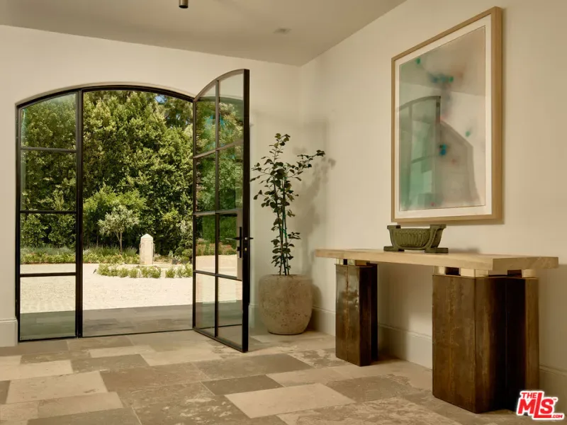 Set behind gates on nearly an acre in Lower Bel Air’s coveted Platinum Triangle, this Contemporary Tuscan estate blends timeless European craftsmanship with modern California living. A circular motor court framed by mature trees and a French fountain sets a grand tone of privacy and sophistication. Light-filled interiors highlight artisan plaster walls, white oak floors, and an effortless connection to a central courtyard with olive trees, fire features, and a full outdoor kitchen an ideal backdrop for entertaining. The chef’s kitchen boasts a striking Calacatta marble island, butler’s pantry, and premium appliances, while formal dining and living rooms are enriched with antique fireplaces and steel-framed doors that open wide to garden and pool views. Amenities include a private gym with bath, a theater with separate entrance, and multiple indoor-outdoor lounges. Upstairs, the primary suite offers dual spa-inspired baths, custom closets, and a private terrace. Additional en-suite bedrooms, a family lounge with bar, and a great room extend the living space. On the garden level, a spacious bar and lounge open directly to the yard, creating a seamless setting for gatherings of any size. Surrounded by citrus groves, century-old olive trees, and landscaped gardens, this gated estate offers resort-style living in one of Los Angeles’ most prestigious settings.