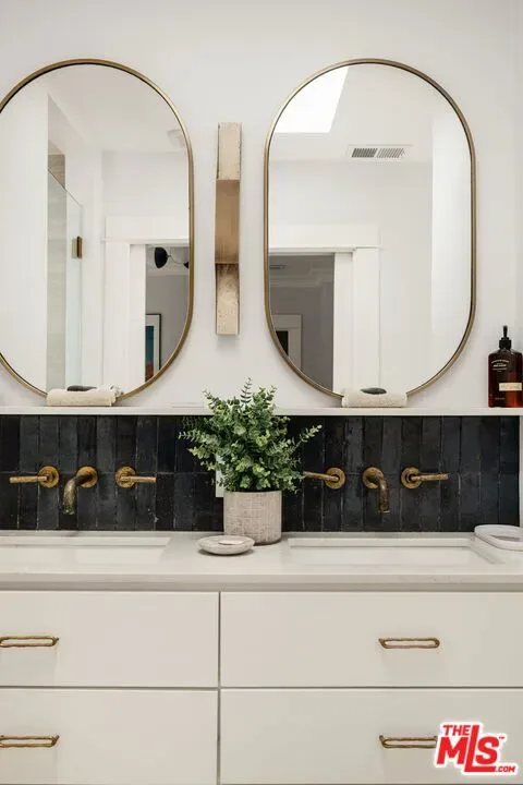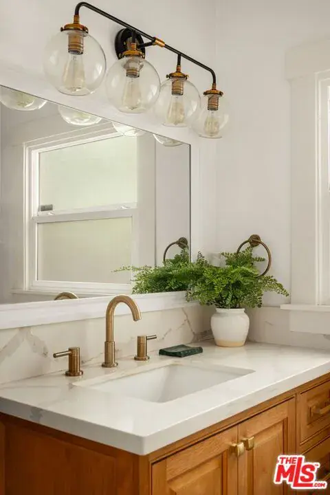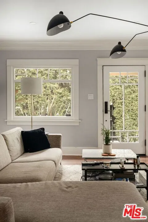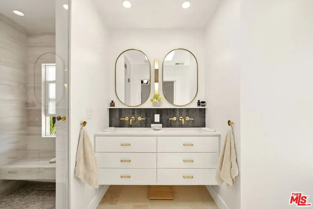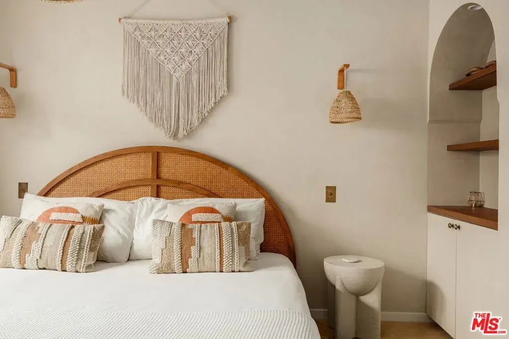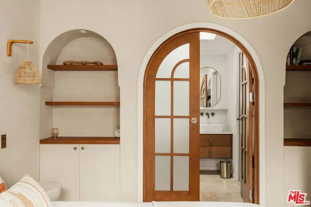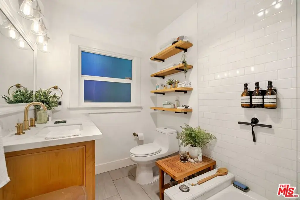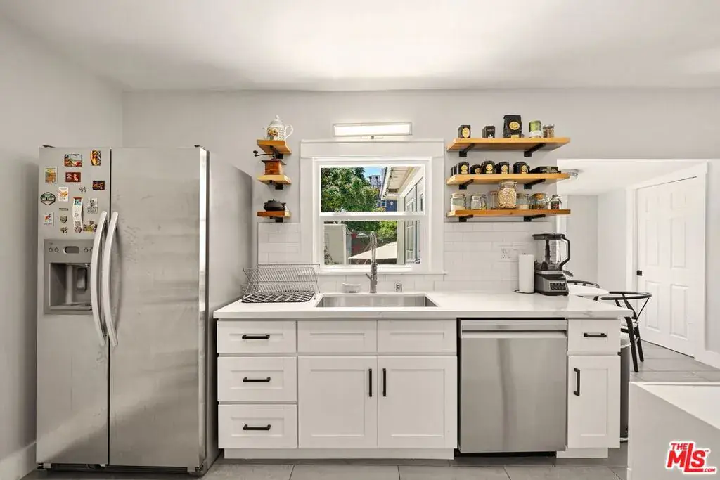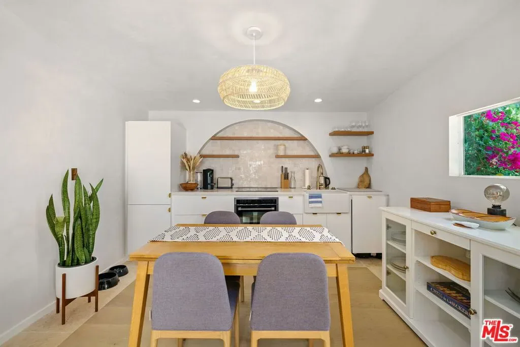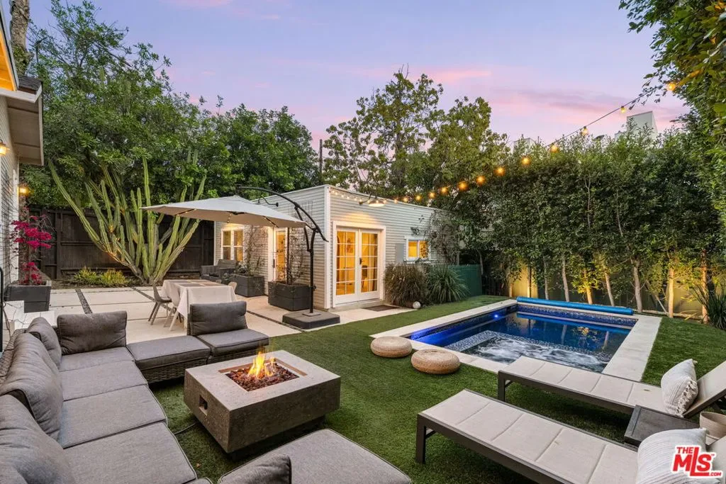 Welcome home to this newly remodeled, super charming, stunning 4BD/4BA Craftsman-style gated retreat, set behind lush privacy hedges in prime Hollywood. This rare single-story oasis features a main residence, a detached permitted ADU, and a resort-style pool with spa, offering exceptional privacy and seamless indoor/outdoor California living. Behind a privacy gate with lush landscaping, the 3BD/3BA main house (approx. 1,596 sq. ft.) is filled with natural light and showcases an open-concept layout designed for both comfort and entertaining. The spacious living room flows into a bright dining area with custom built-ins, while the remodeled kitchen features stainless steel appliances, quartz countertops, a wine fridge, and a brand-new dishwasher and refrigerator. A thoughtful renovation added a 110 sq. ft. extension, creating a true primary suite with a custom-built wardrobe and a beautifully designed ensuite bathroom. The primary bath features a double vanity with terracotta backsplash, a limestone-clad shower, and a separate water closet. Two additional bright and spacious bedrooms (one is being used as an office) are enhanced with chair rails and chic designer wallpaper. This professionally designed home includes hardwood flooring, curated designer finishes, central A/C and heat, and a Nest thermostat throughout. Additional main-house features include a brand-new water heater (November 2025), an updated A/C unit (2023), one Ring camera at the front door, one wired front-yard camera, two Google cameras in the backyard, and an ADT alarm system with one motion sensor, two glass-break sensors, and two door-opening sensors. Step outside to a true entertainer’s paradise with multiple seating areas, a deck, and a lush grassy patio leading to the brand-new heated pool and spa. The permitted and detached 1BD/1BA guest house (approx. 461 sq. ft.) was newly built with a new foundation and wall insulation and is a design masterpiece inspired by traditional Greek architecture blended with warm Balinese textures. The bedroom features sculptural curved niches and doors, limestone paint, and a striking mix of travertine stone and hardwood floors. The primary bathroom is filled with natural light from a skylight and includes a double vanity with marble countertops and backsplash, antique brass fixtures, concrete sinks, and a shower wrapped in imported handmade Moroccan terracotta scallop tiles with polished concrete walls. An arched custom glass shower door completes the cohesive architectural design. The ADU includes its own separate washer and dryer, conveniently located in a small outdoor cabana. Beyond the gate, a long private driveway offers ample parking for multiple vehicles. Ideally located in the heart of Hollywood and bordering West Hollywood, this exceptional property is moments from major studios, top restaurants, shopping, and entertainment. Truly a rare find, oozes charm, and an absolute must-see.