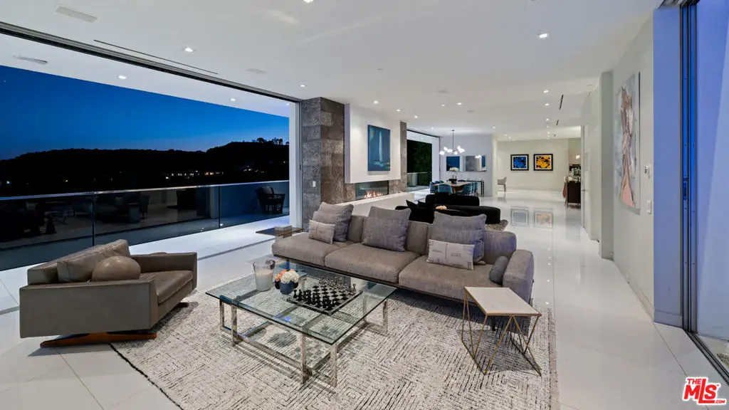 Set at the end of a private, gated drive, this architectural masterpiece offers unparalleled privacy and sweeping panoramic views stretching from Downtown LA to Catalina Island. Featuring three levels of seamless indoor-outdoor living, the home boasts polished white marble floors, floor-to-ceiling glass walls, and stunning vistas from every room. The first level includes a spacious lounge and luxurious bedroom suite. A floating staircase leads to the second level, where a chef’s kitchen with high end appliances, custom European cabinetry, indoor/outdoor dining areas, and a private guest suite await. The lower level is a true retreat with two additional bedrooms, including a master suite with direct access to a resort-style infinity pool and swim-up bar. Expansive patios, lounging areas, and a cozy fireplace complete this extraordinary home, designed to captivate and elevate your lifestyle.