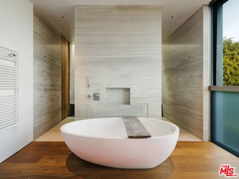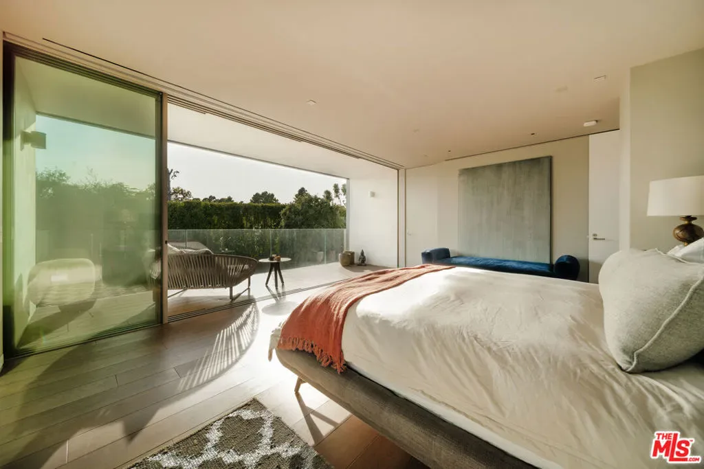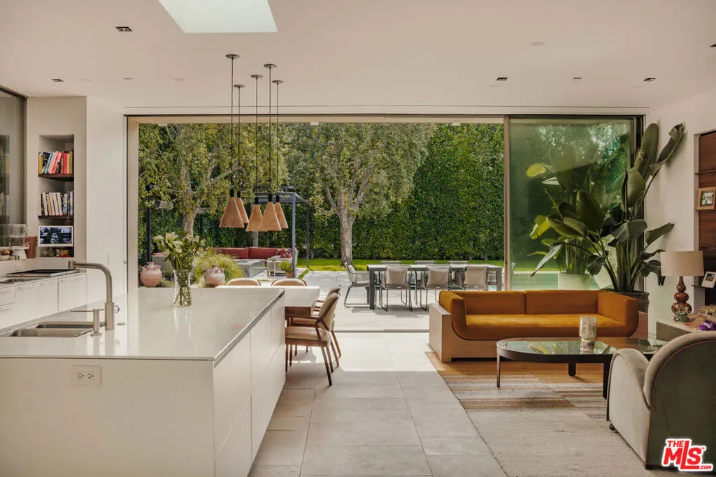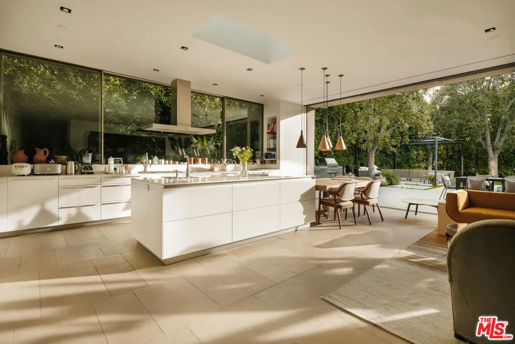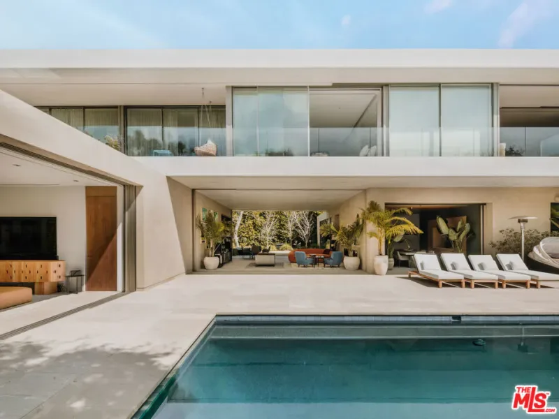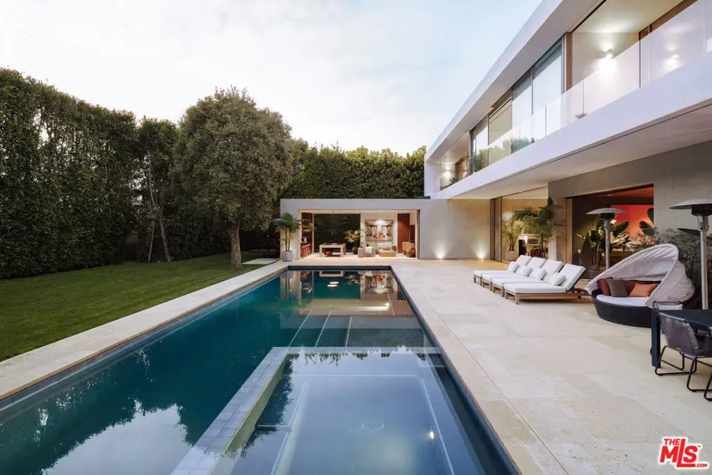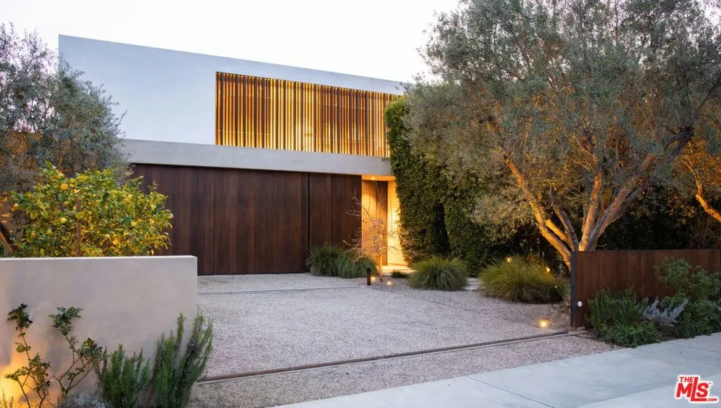 Introducing One Over Two, an exquisite architectural estate by Michael Kovac and MG Partners, located in one of Brentwood’s most desirable enclaves. Set on an expansive double flat lot that amplifies both scale and privacy, this custom family home is as visually captivating as it is inherently livable. Beyond its bold facade, a private sanctuary unfolds, where a serene entry courtyard sets a tranquil tone from the moment of arrival. Voluminous interiors, defined by warm wood accents and walls of glass, dissolve the boundaries between indoors and out. The gourmet kitchen is outfitted with the finest integrated appliances, while an additional chef’s kitchen, complete with its own private entrance and the option to be discreetly enclosed, effortlessly caters to both intimate evenings and grand-scale entertaining. The elegant dining room seamlessly opens to the outdoors, offering a stunning setting for memorable meals and sophisticated soires. A hidden bookshelf door reveals a private office and guest suite, while the upper level can be secured, creating a tranquil retreat above it all. The primary suite features a spacious walk-in closet and sliding doors that open to a deep, covered balcony, perfect for taking in the serene views of the lushly landscaped grounds. The spa-inspired ensuite is designed for utmost relaxation, complete with an infrared sauna, dual vanities, and a freestanding tub. Curated for those who appreciate the art of entertaining, the estate’s outdoor spaces are a true masterpiece of leisure. A bocce court, immaculate pool, spa, outdoor kitchen with pizza oven and meticulously kept landscaping create the perfect setting for gatherings that flow effortlessly from day to night. Below, the basement accommodates atech room and a wine cellar. To facilitate clutter-free living within the expansive, open spaces, generous storage areas have been thoughtfully integrated across all three levels. Elevated by cutting-edge amenities, including radiant heated floors throughout, a state-of-the-art Mitsubishi HVAC system with ultra-quiet airflow and advanced filtration, solar power with battery backup, whole-home water filtration, a discreet laundry chute, and 24-hour neighborhood guard patrol, this home is as intelligent as it is striking. Unparalleled in design and setting, this is a home you won’t want to miss.